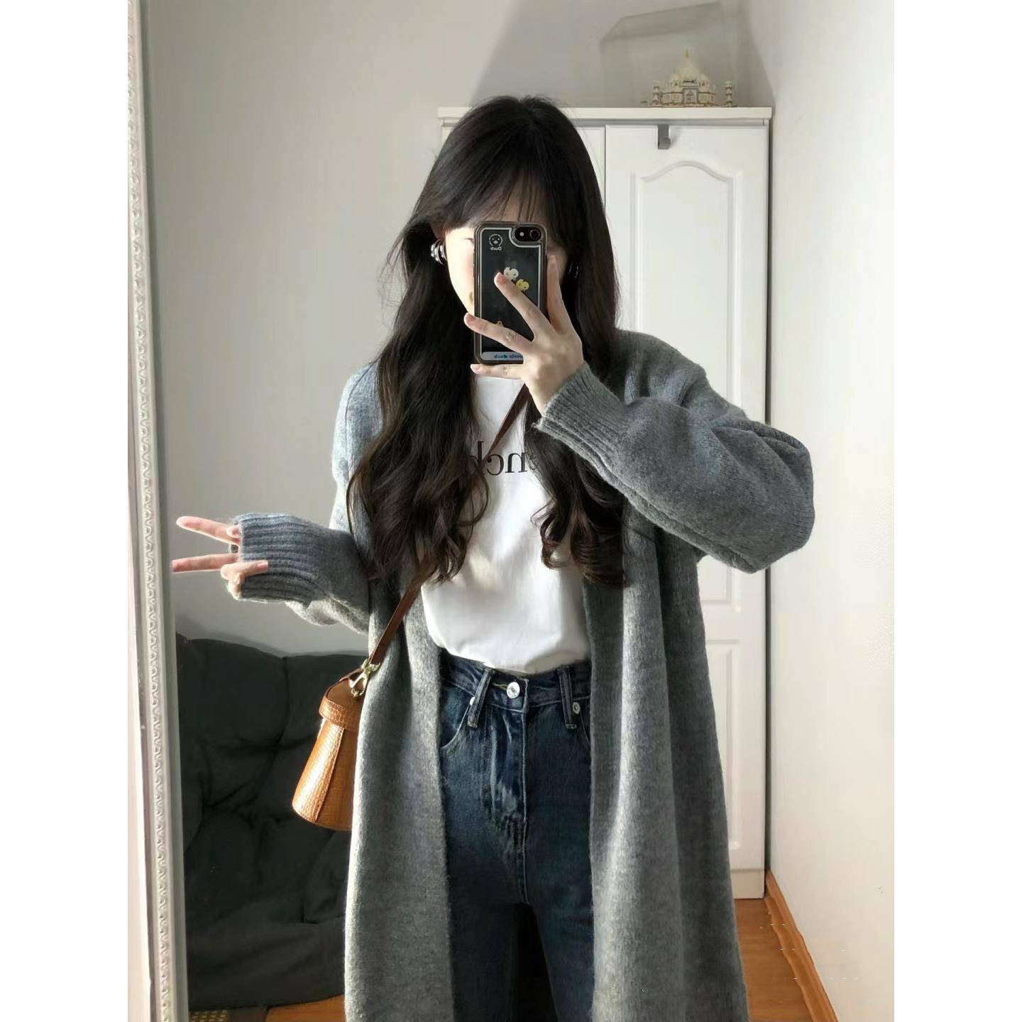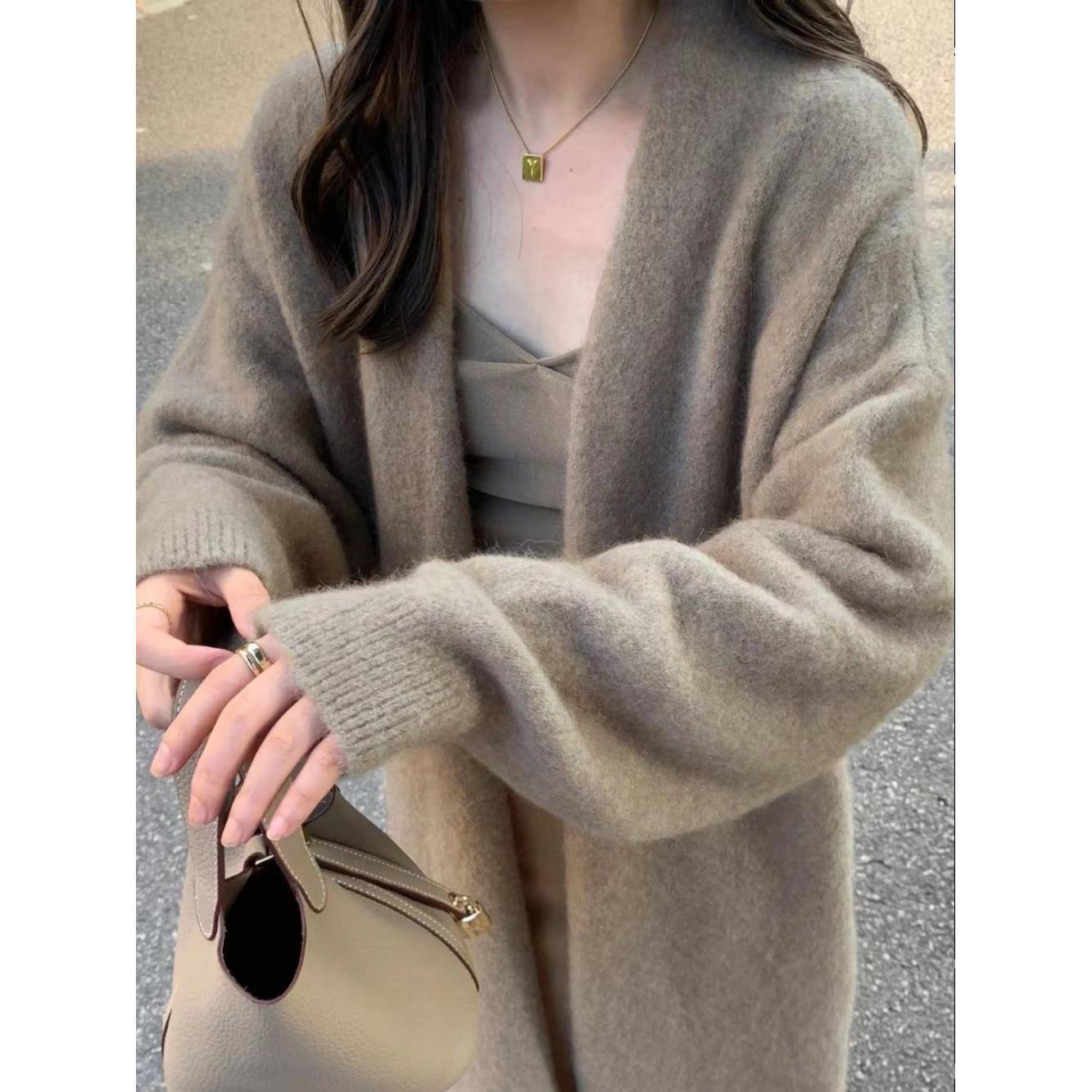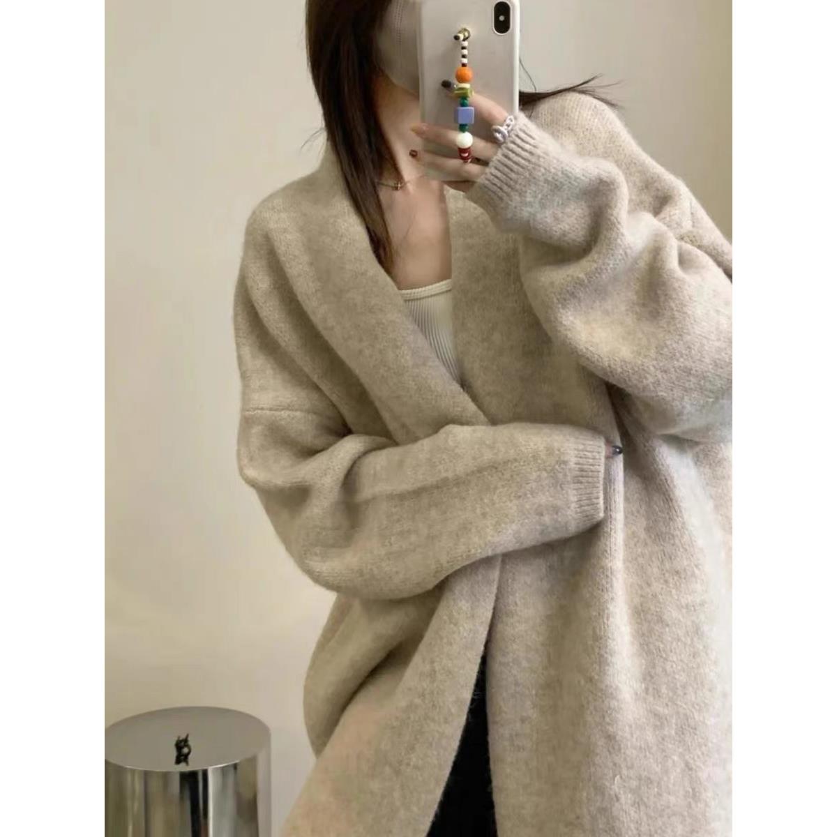 慵懒感小香风过膝中长款针织开衫女宽松甜美软糯温柔纯色毛衣外套