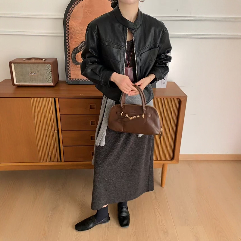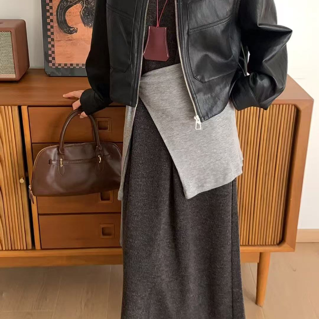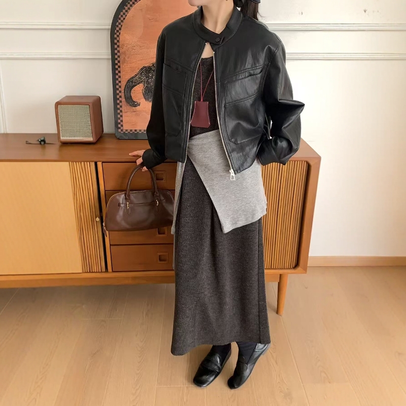 欧货黑色皮衣外套女2025秋季新款宽松大口袋韩系休闲款短外套女潮