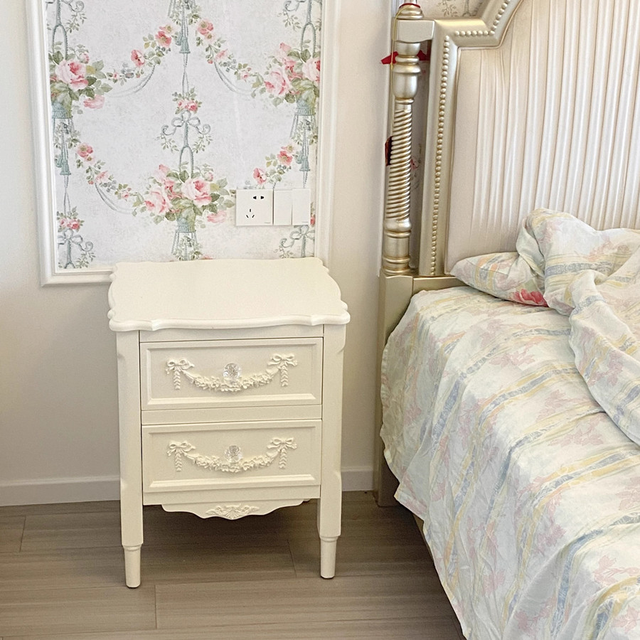 欧式雕花二抽实木床头柜卧室床边柜美式法式乡村复古收纳储物斗柜