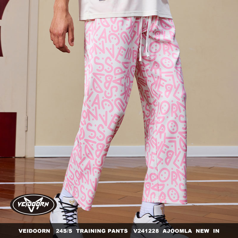 维动波潮花裤子九分男春夏薄款美式篮球训练运动长裤直筒休闲卫裤