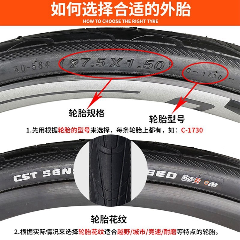 正新CST自行车内外胎26 27.5寸*1.75山地车轮胎半光头防刺胎C1698