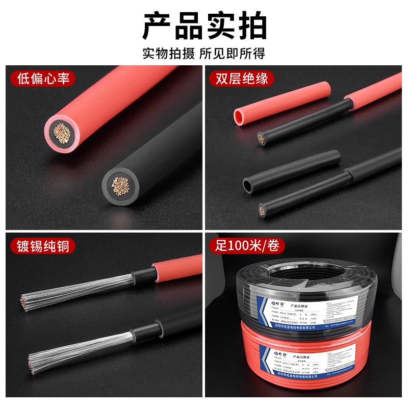 国标PV1-F光伏电缆直流太阳能专用电线4/6平方多股镀锡铜芯连接线