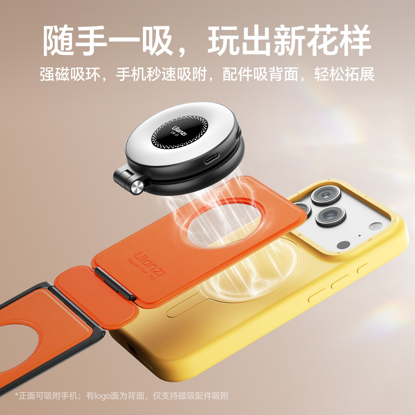 Ulanzi优篮子 PS01磁吸手机架支架便携桌面支撑magsafe背贴吸磁适用苹果iPhone17懒人自拍拍摄神器vlog自拍杆