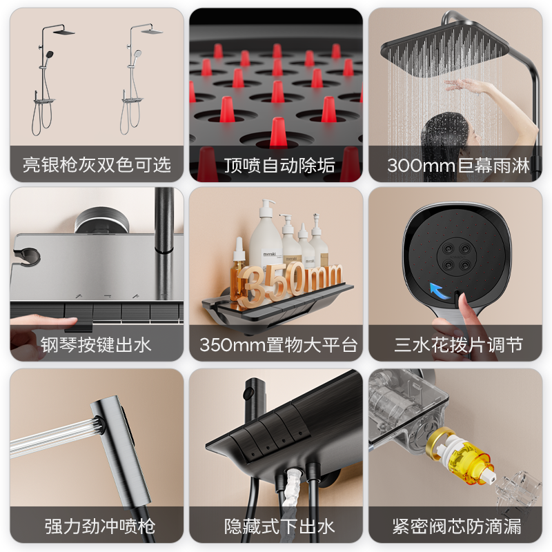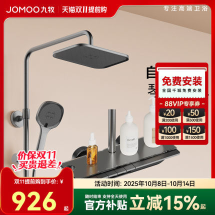 【政府补贴】九牧官方花洒淋浴套装钢琴键方形置物台淋浴器36646