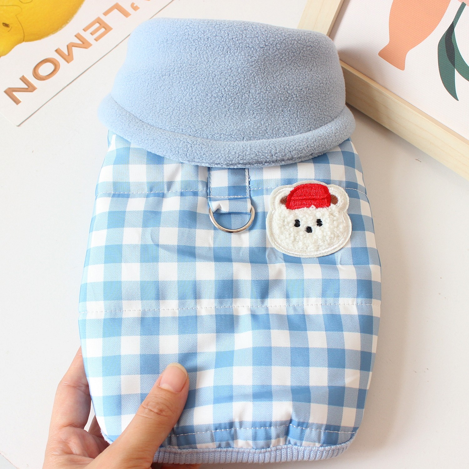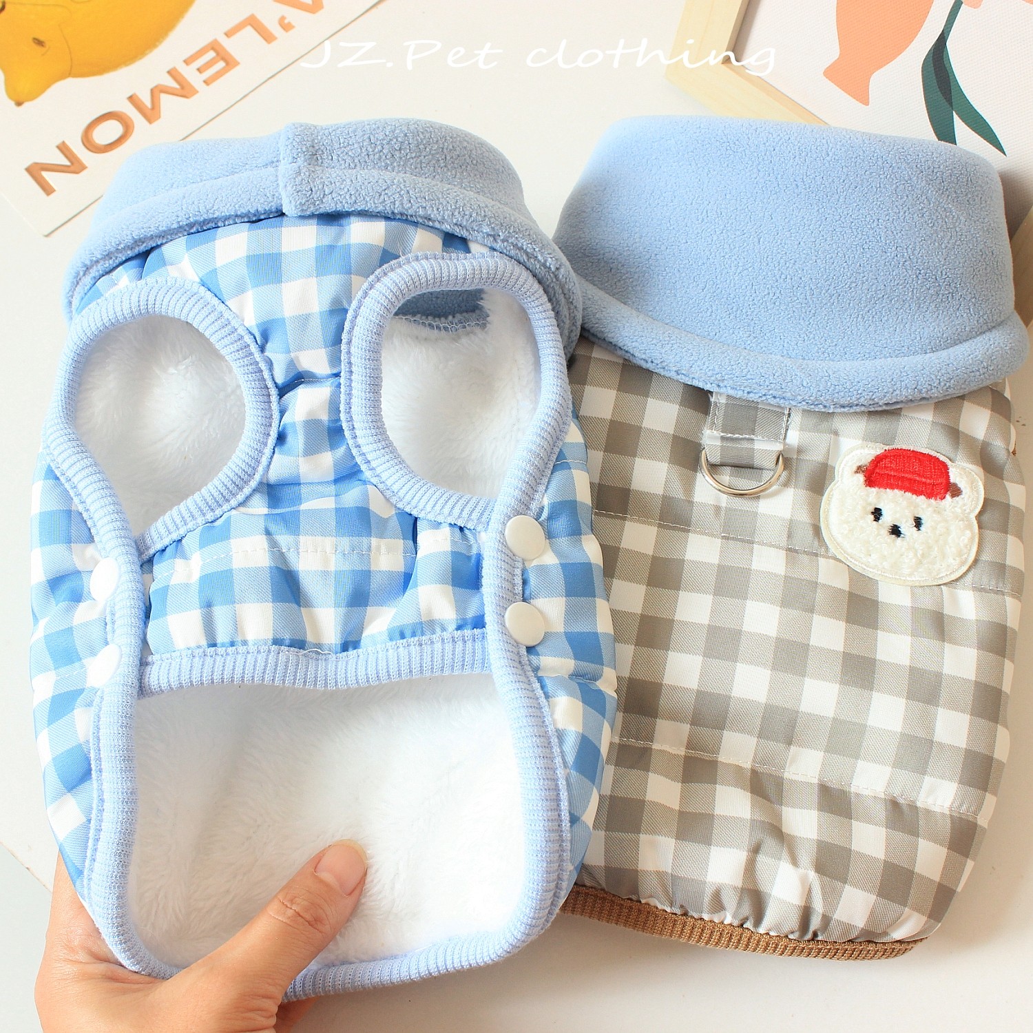 狗狗衣服宠物服装小型犬猫咪泰迪比熊秋冬装侧扣格子马甲保暖加厚