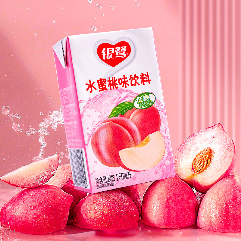 银鹭水蜜桃果汁饮料250ml风味冰凉盒装果汁解腻饮品批发送礼