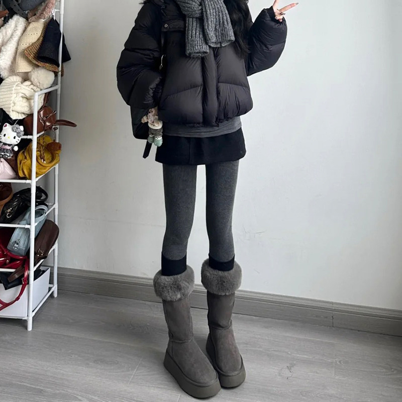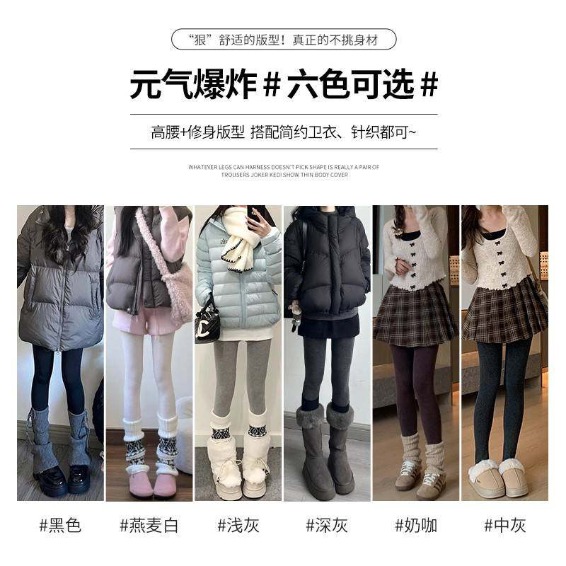 灰色紧身打底裤女冬外穿高腰显瘦保暖秋裤小个子加绒加厚踩脚棉裤