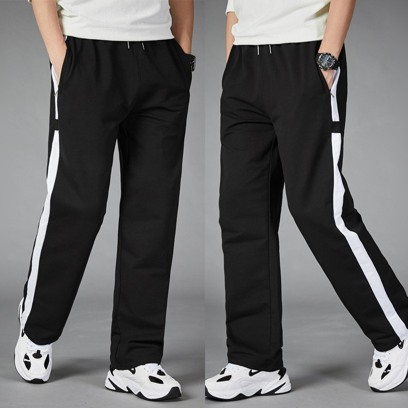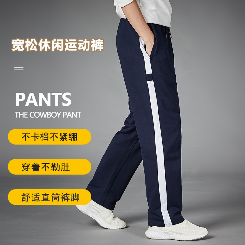 春秋男士休闲长裤灰色运动裤加大码宽松拼色卫裤秋天男款平角直筒