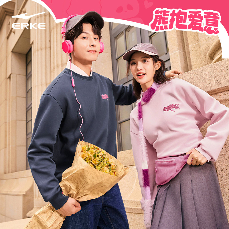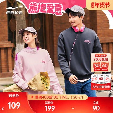 熊抱爱意丨鸿星尔克2026春季新款男女情侣款圆领长袖套头卫衣衣服