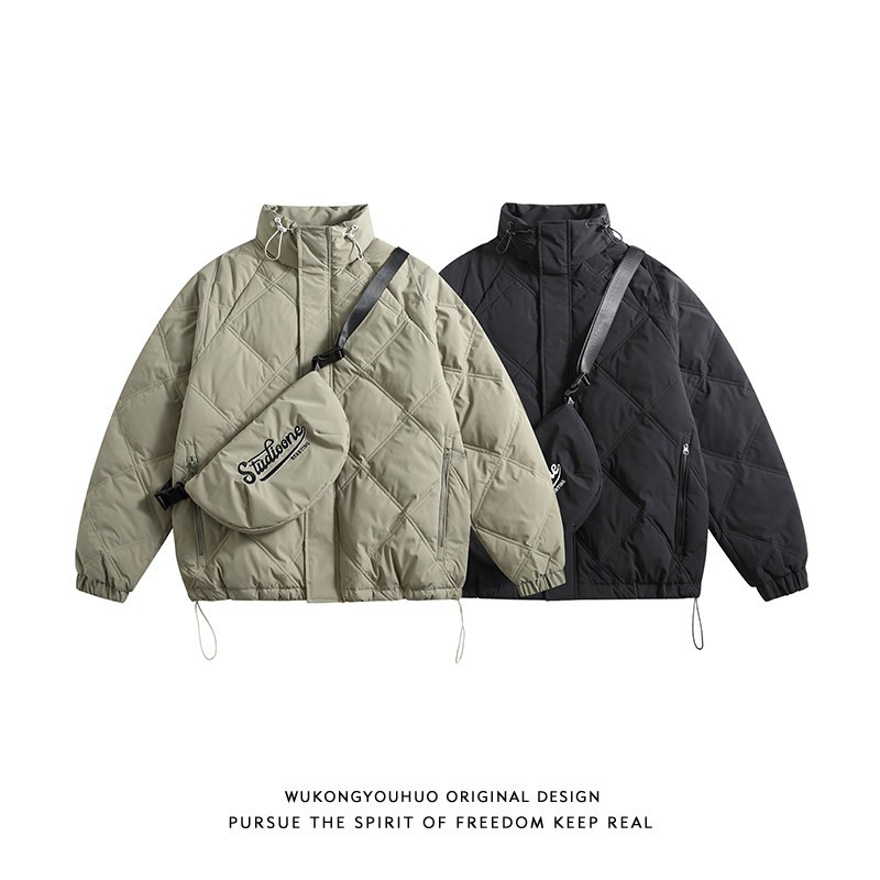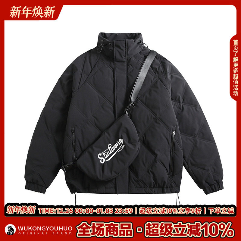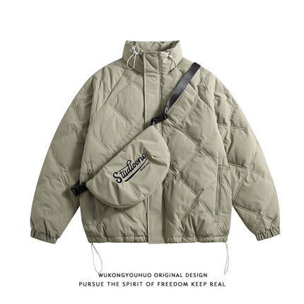 悟空有货冬季90白鸭绒立领羽绒服男潮牌嘻哈挎包情侣加厚保暖外套