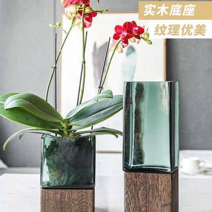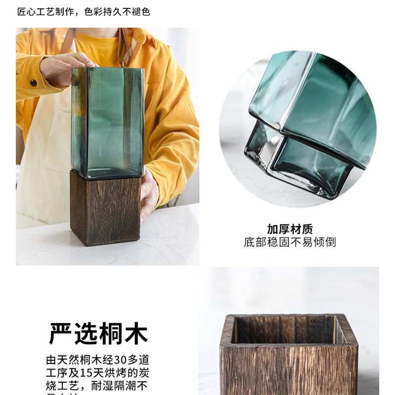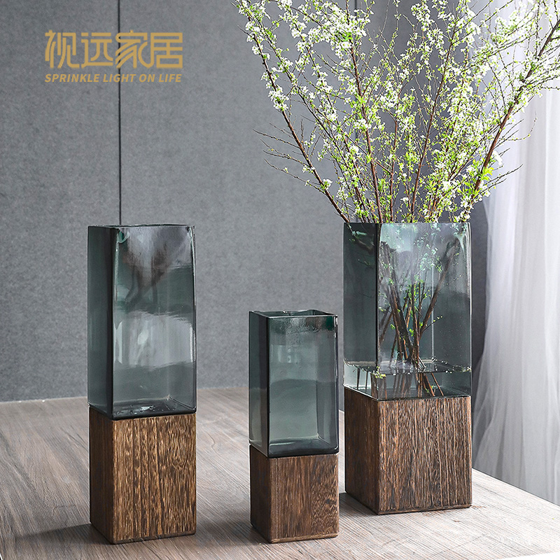 新中式实木花瓶摆件客厅插花玻璃鲜花干花马醉木富贵竹落地大