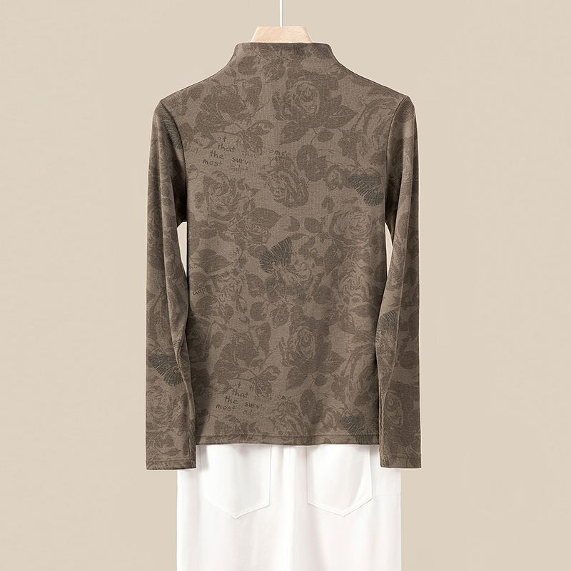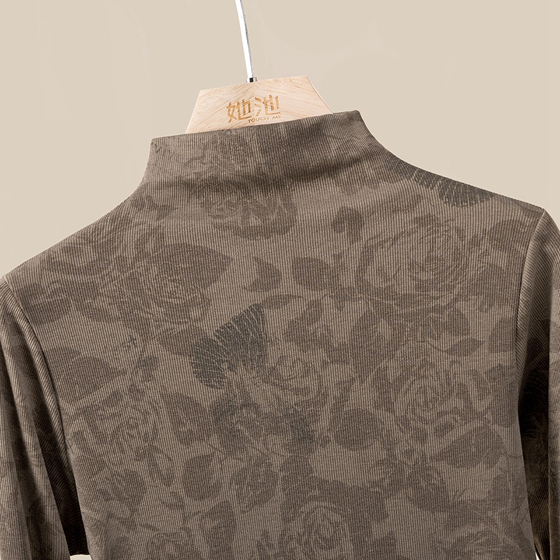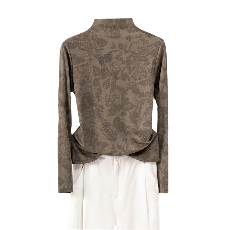 她池半高领打底衫2025冬装新款女装时尚气质质感提花正肩长袖T恤