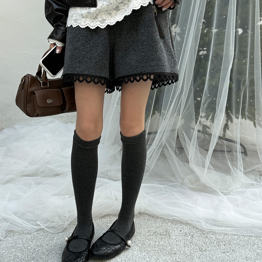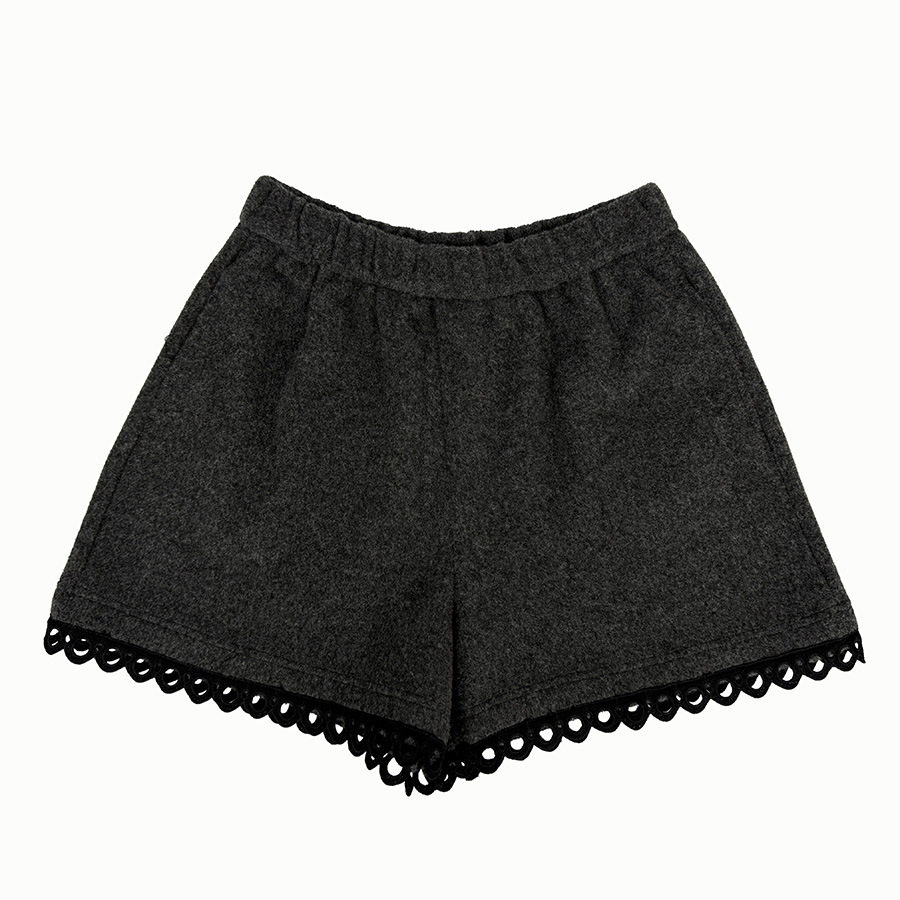 黎诺早春新款韩系松紧高腰蕾丝阔腿短裤女2026宽松显瘦五分中裤子