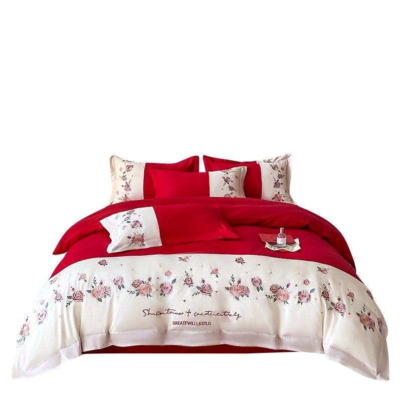 中式婚庆四件套大红色床单被罩全棉结婚陪嫁婚房床上用品