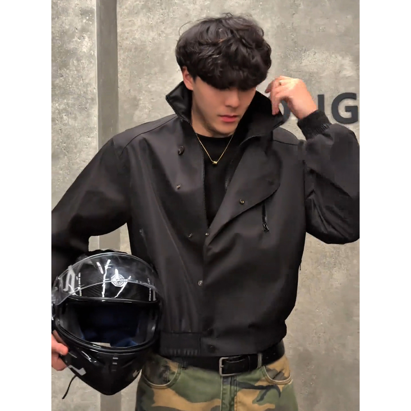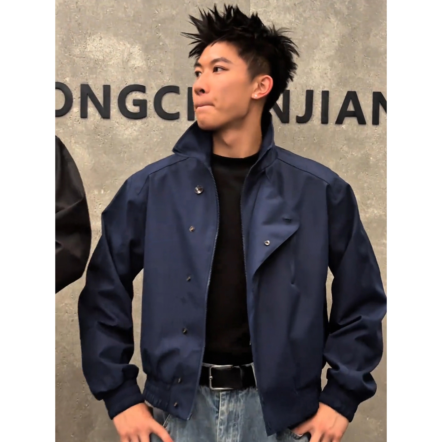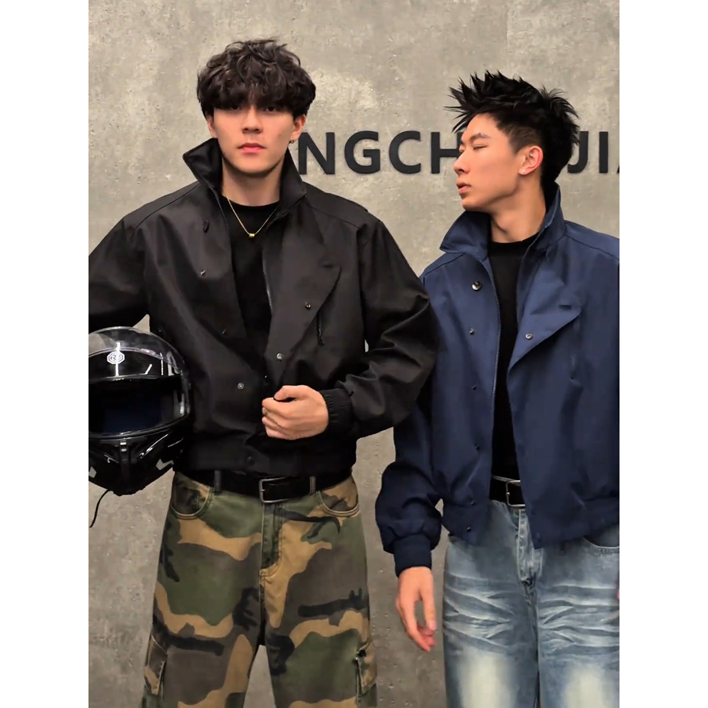 美式短款飞行教练夹克男生秋冬季廓形立领工装外套硬汉穿搭棒球服