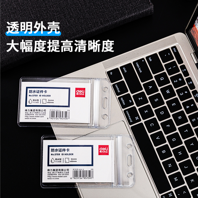 得力防水工作证件卡套带挂绳胸卡饭卡学生公交校牌挂牌厂牌双面