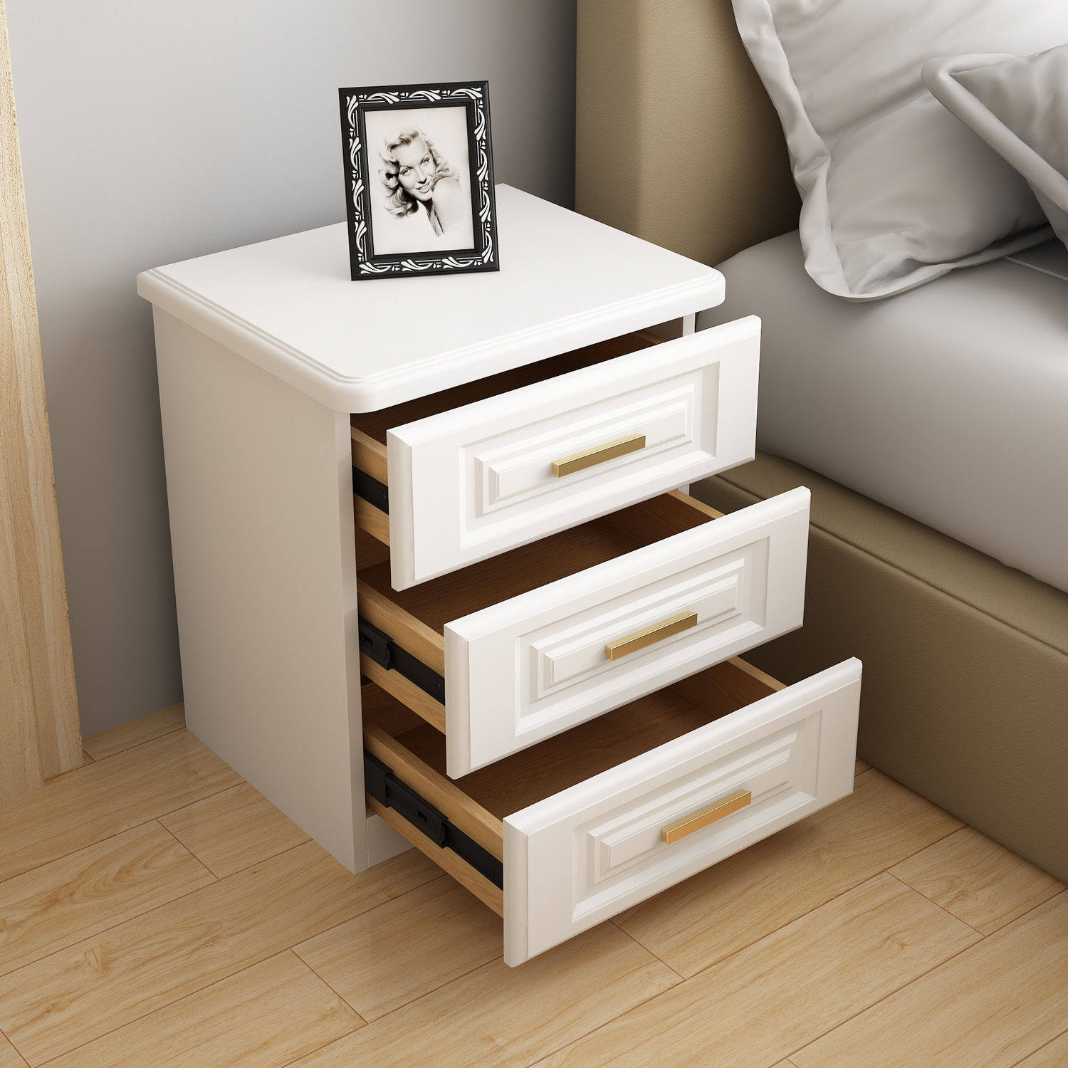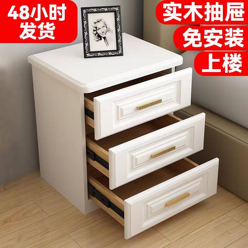 实木轻奢床头柜简约现代白色北欧床边小柜子经济型卧室医院床头柜