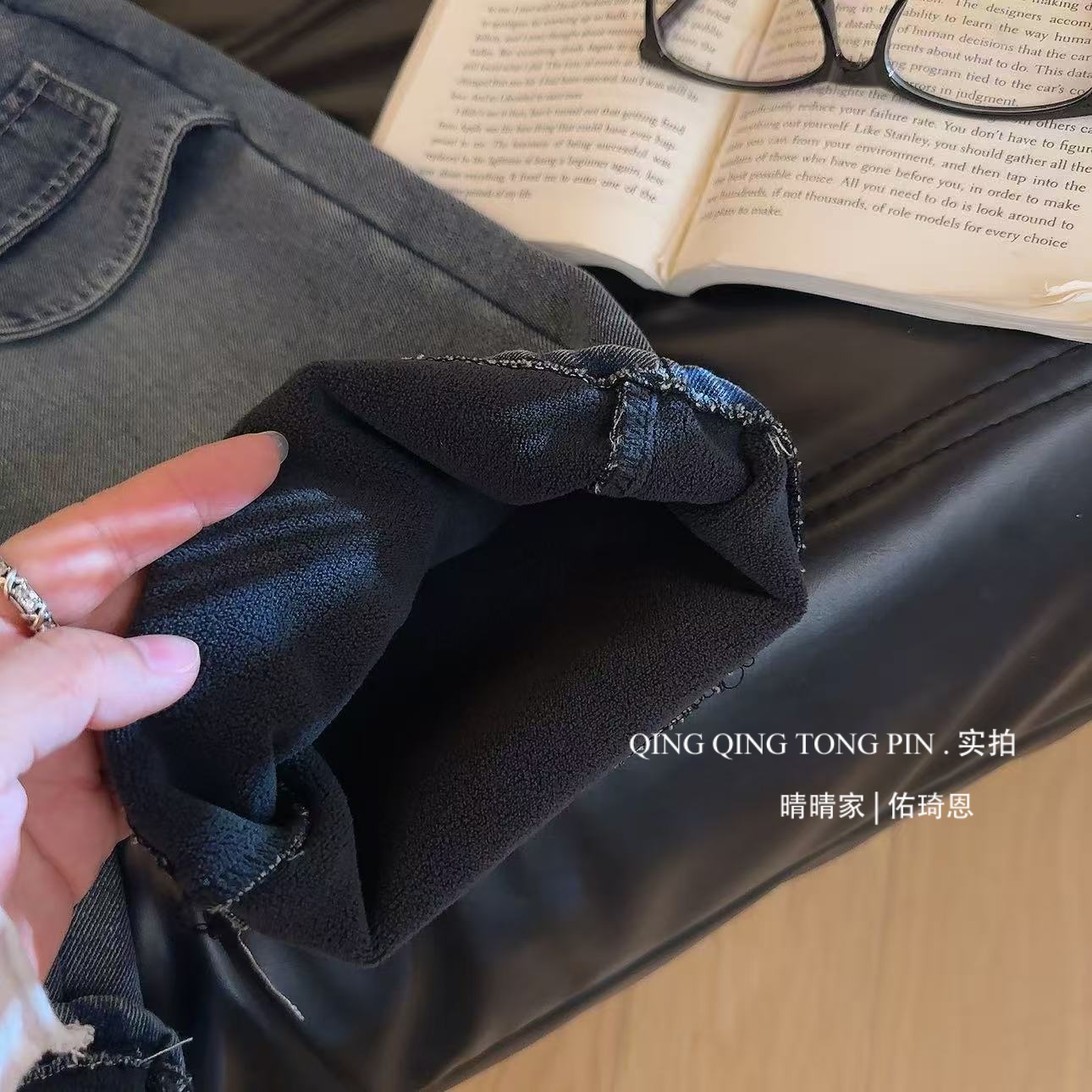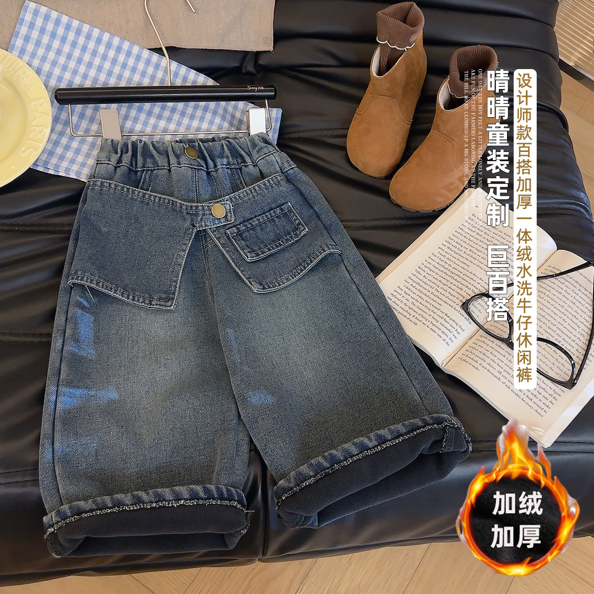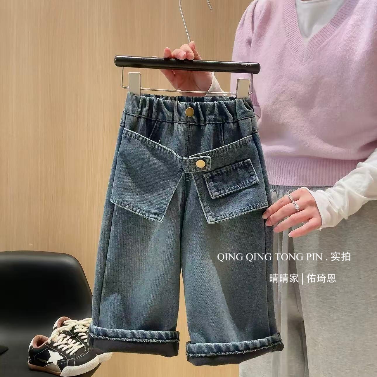 【韩韩良品】女童洋气阔腿牛仔裤新款网红不对称设计感韩版加绒裤
