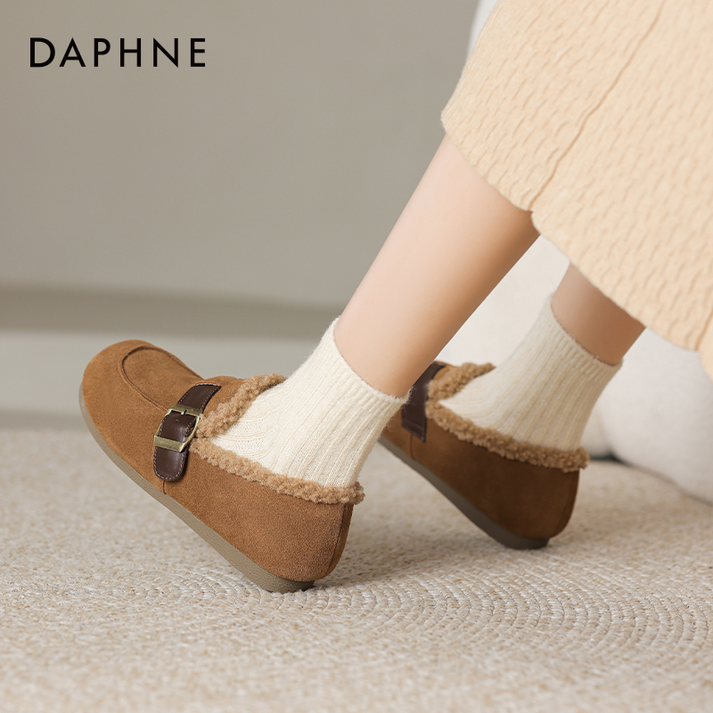 达芙妮保暖勃肯鞋秋冬加绒2025新款全包平底棉鞋女软底单鞋豆豆鞋