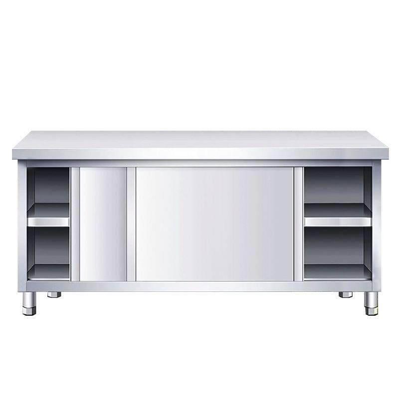 不钢拉门厨工作台商用锈切菜收纳储物作台房饭操店UIP打包案板工