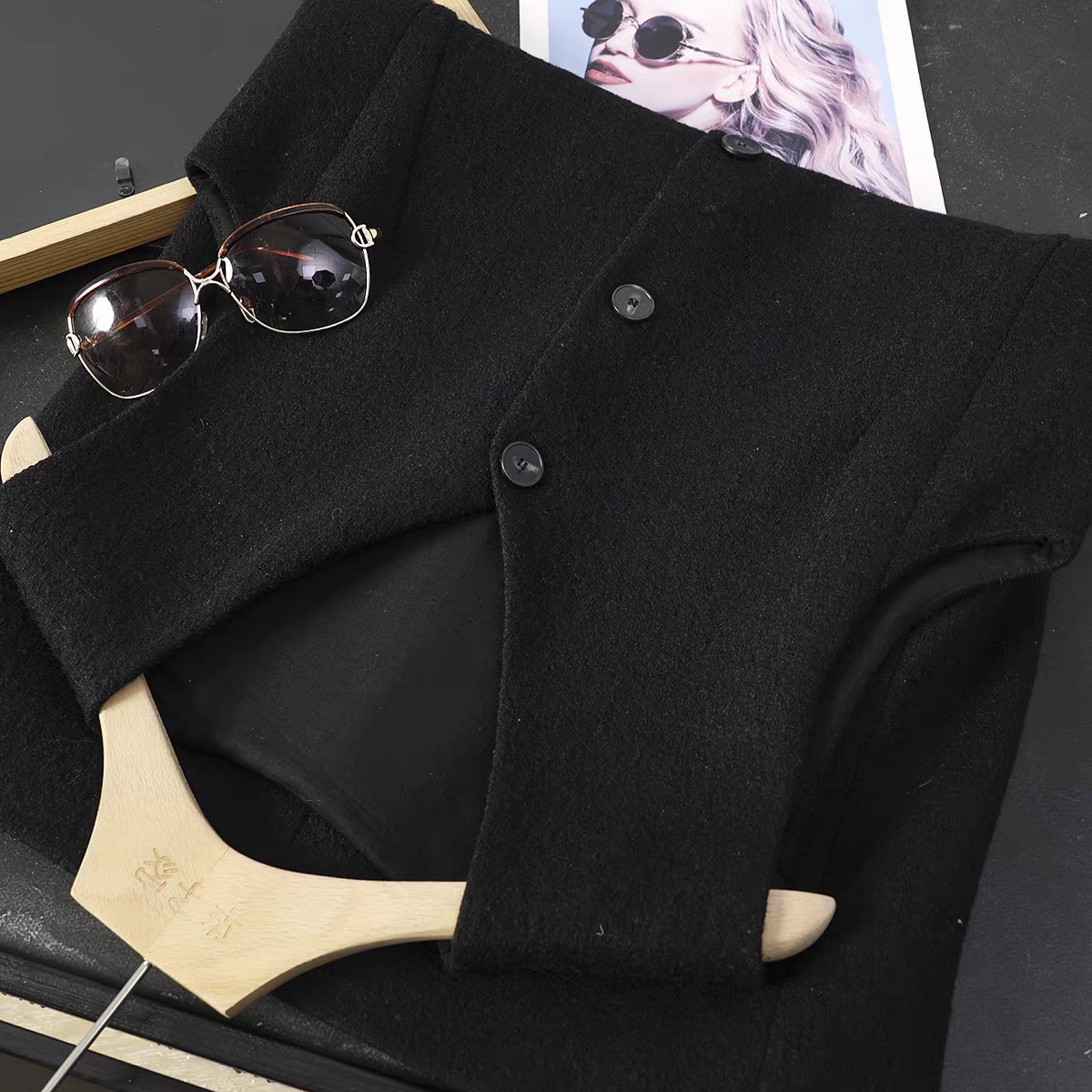 桃子家!羊毛混纺V领单排扣毛呢背心裙女秋冬无袖马甲连衣裙