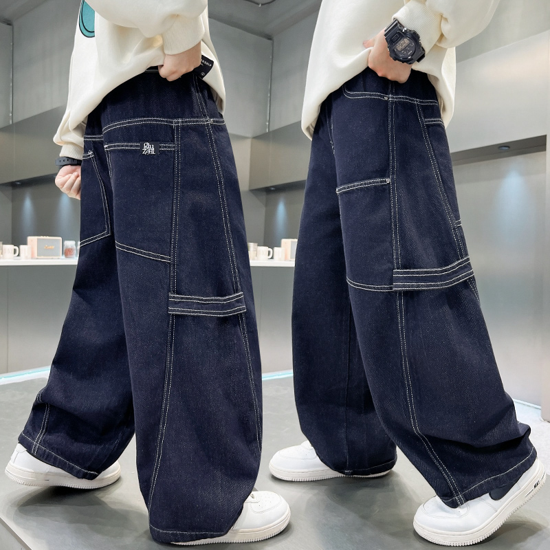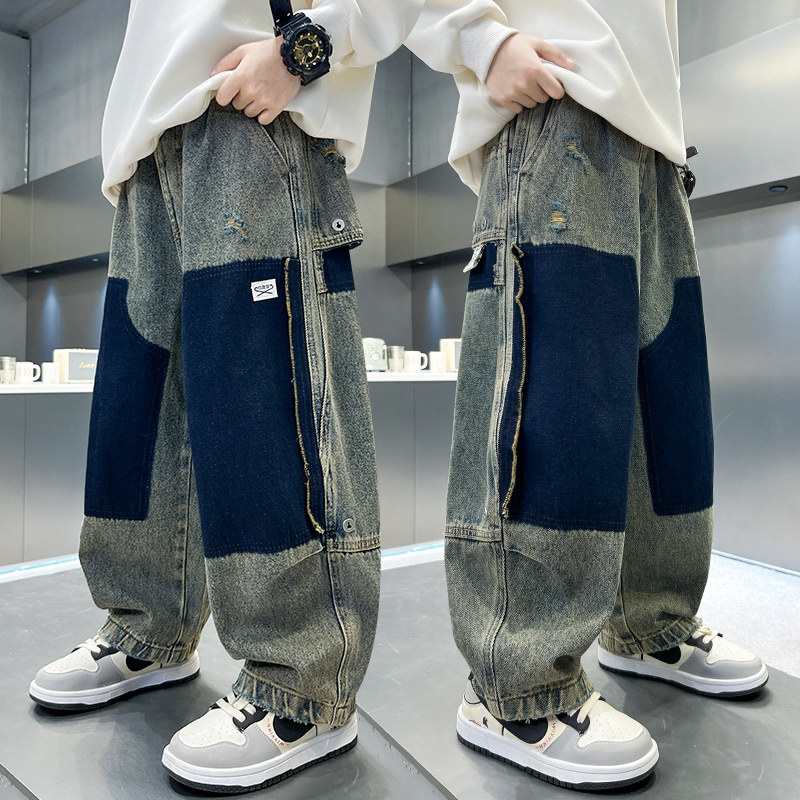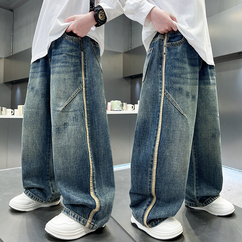 男童牛仔裤上学酷炫早秋直筒洋气穿搭潮童中大童网红高中生炸街