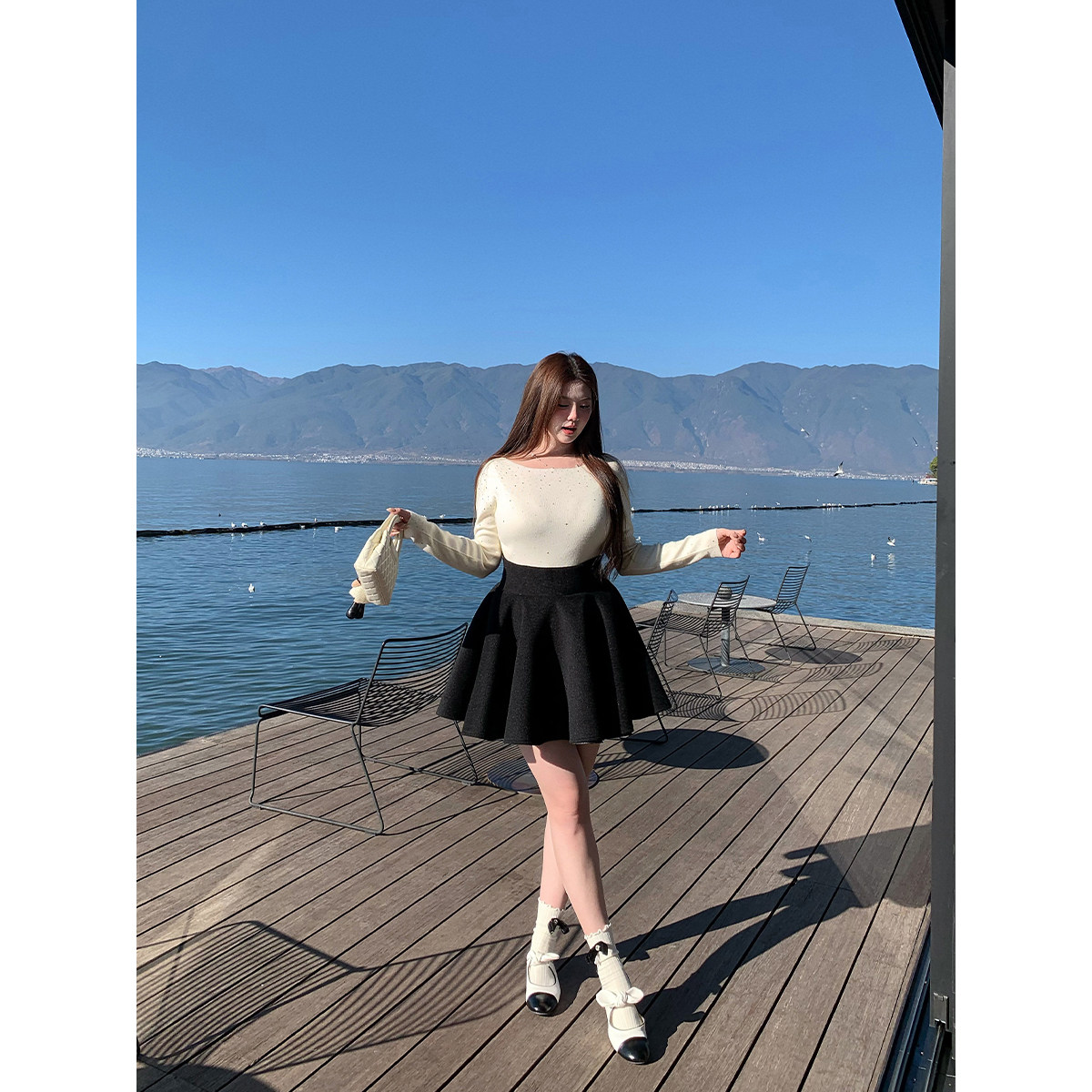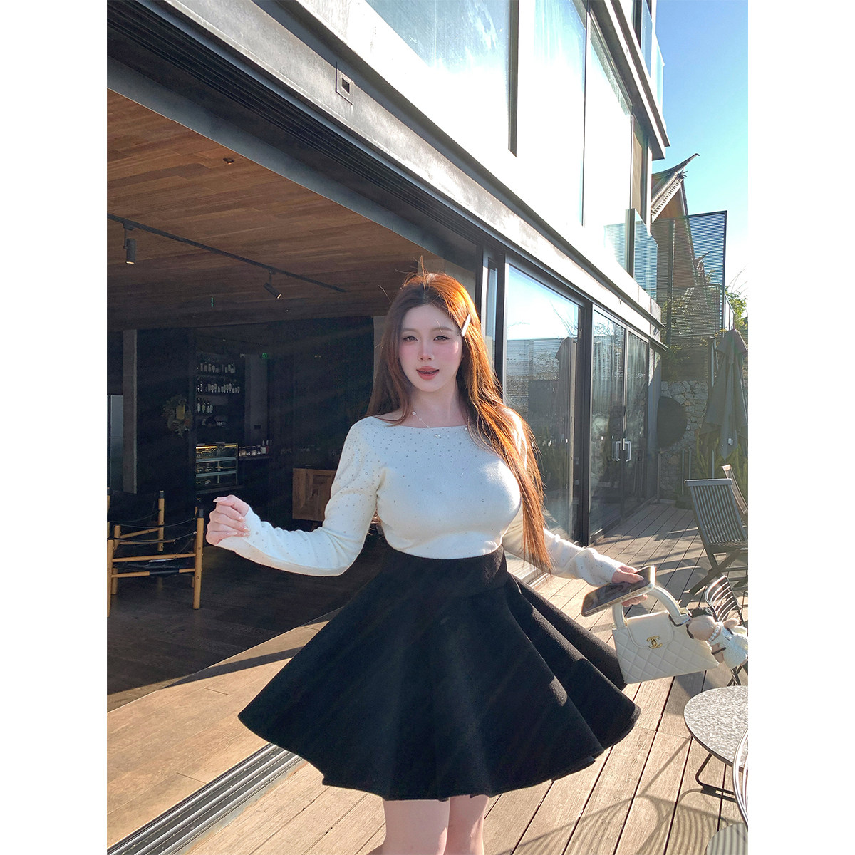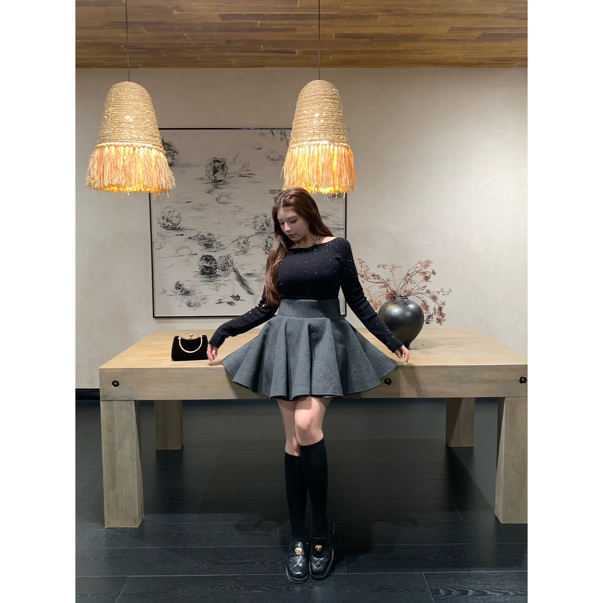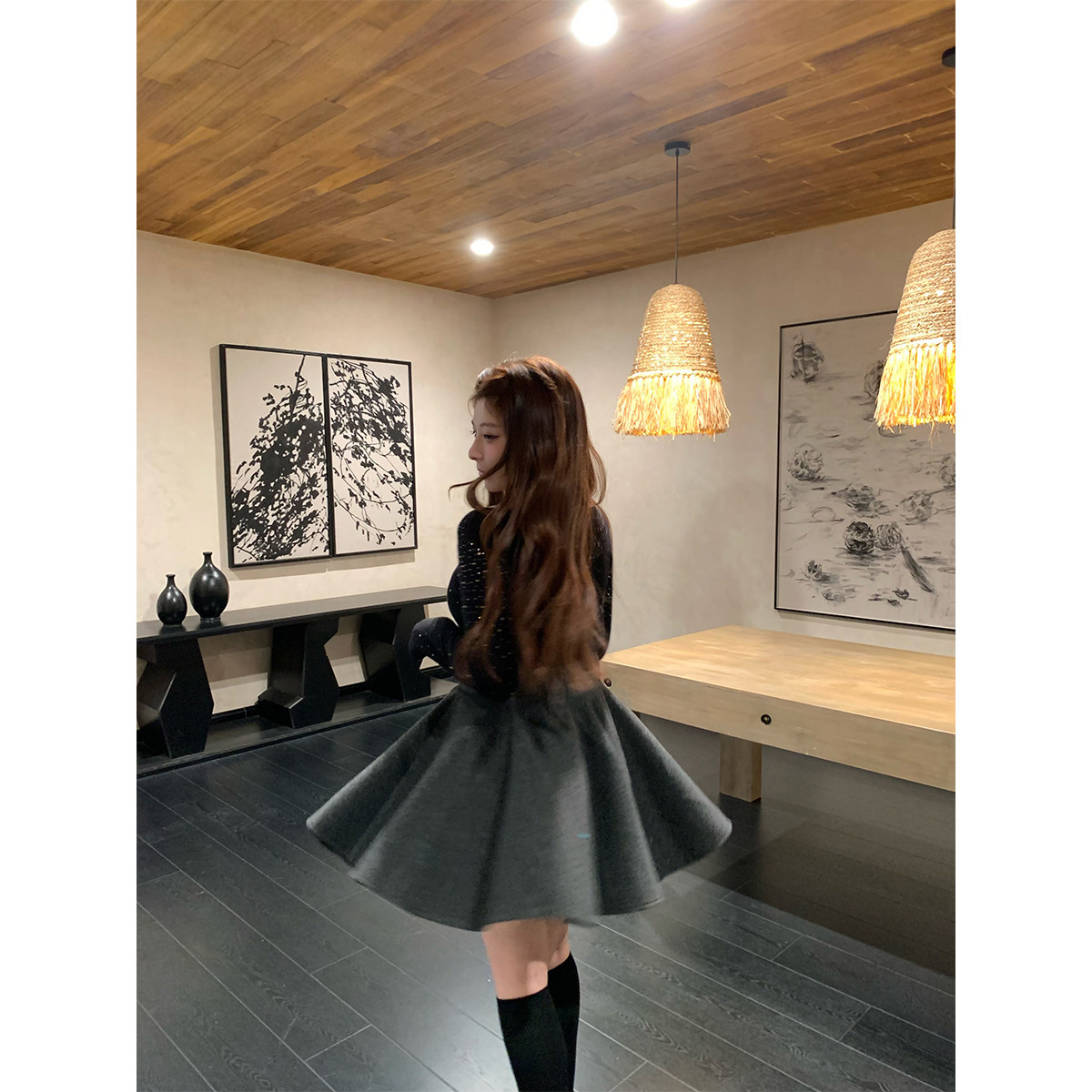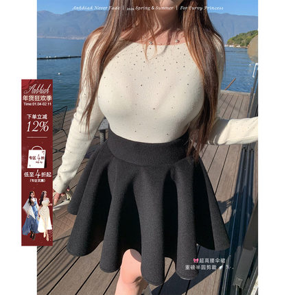 安妮不火 公主感高腰毛呢A字半身蓬蓬伞裙微胖大码收腰呢子小短裙