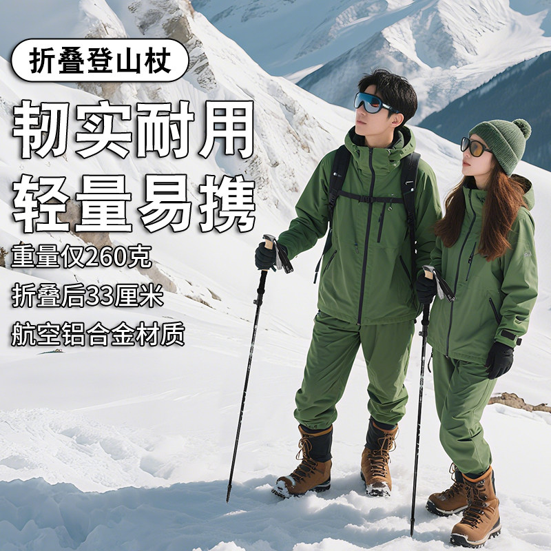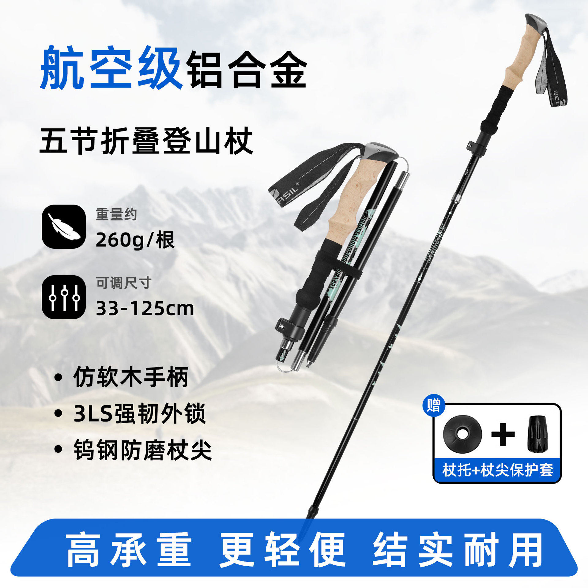户外露营登山手杖轻便伸缩铝合金拐杖多功能男女徒步爬山登山装备