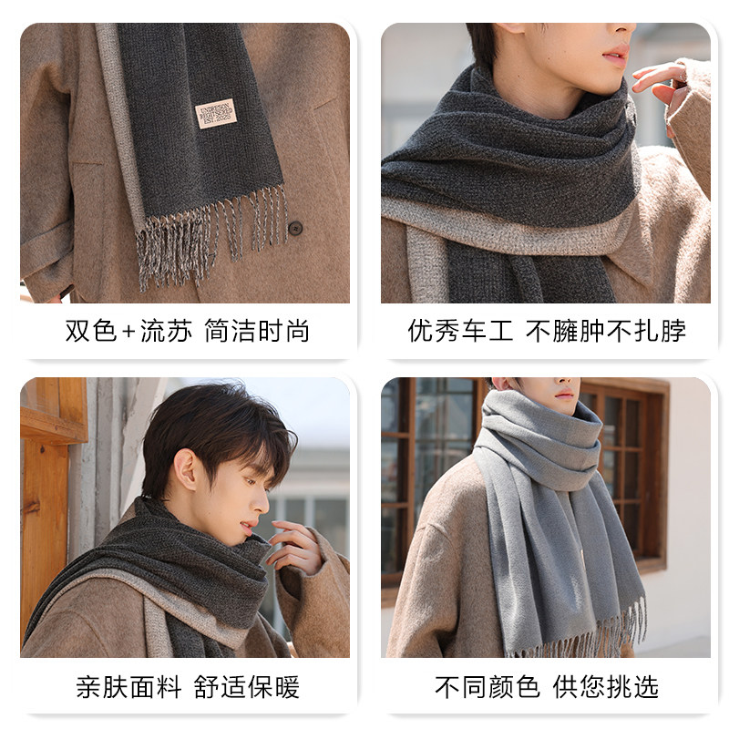 双面围巾男生围脖男士冬季男式加大加厚加长款保暖高级感生日礼物