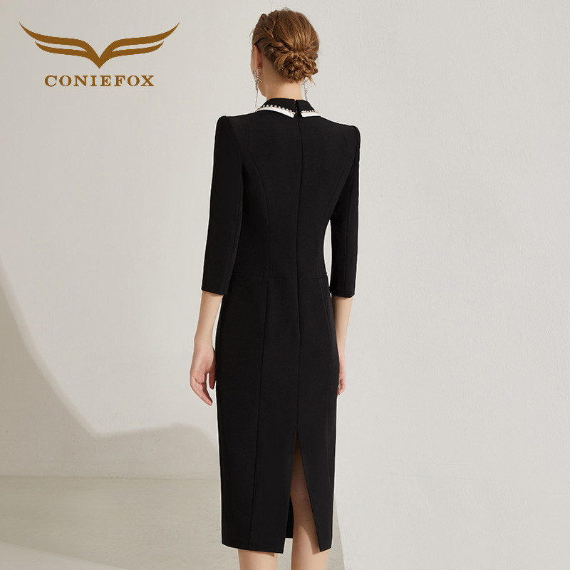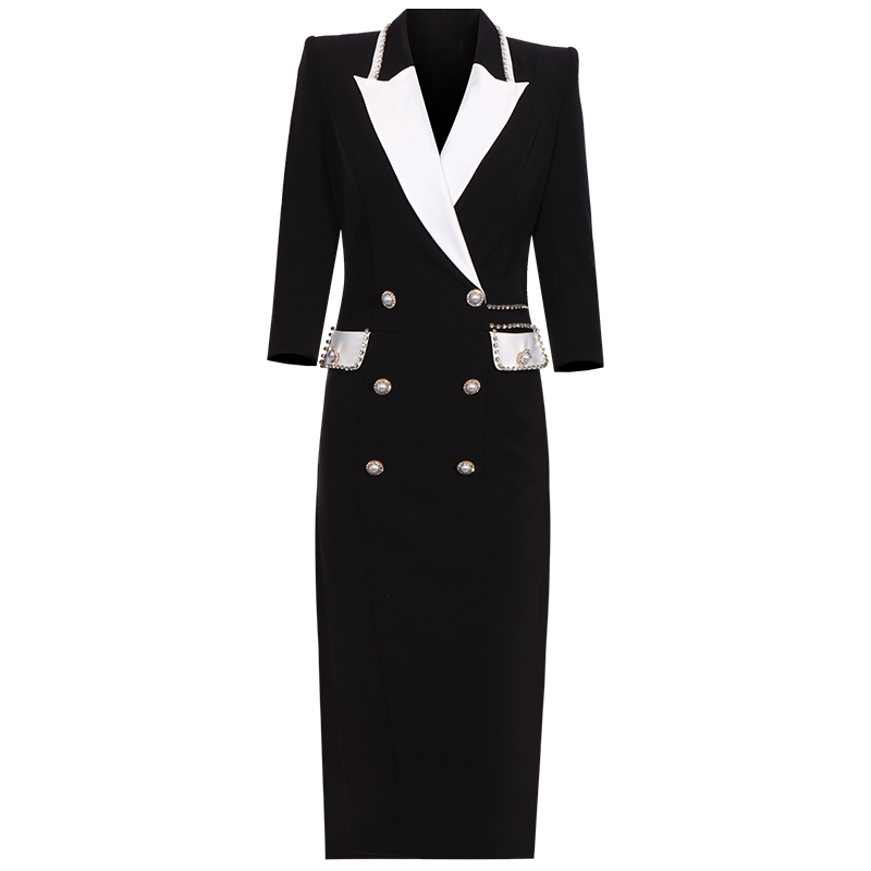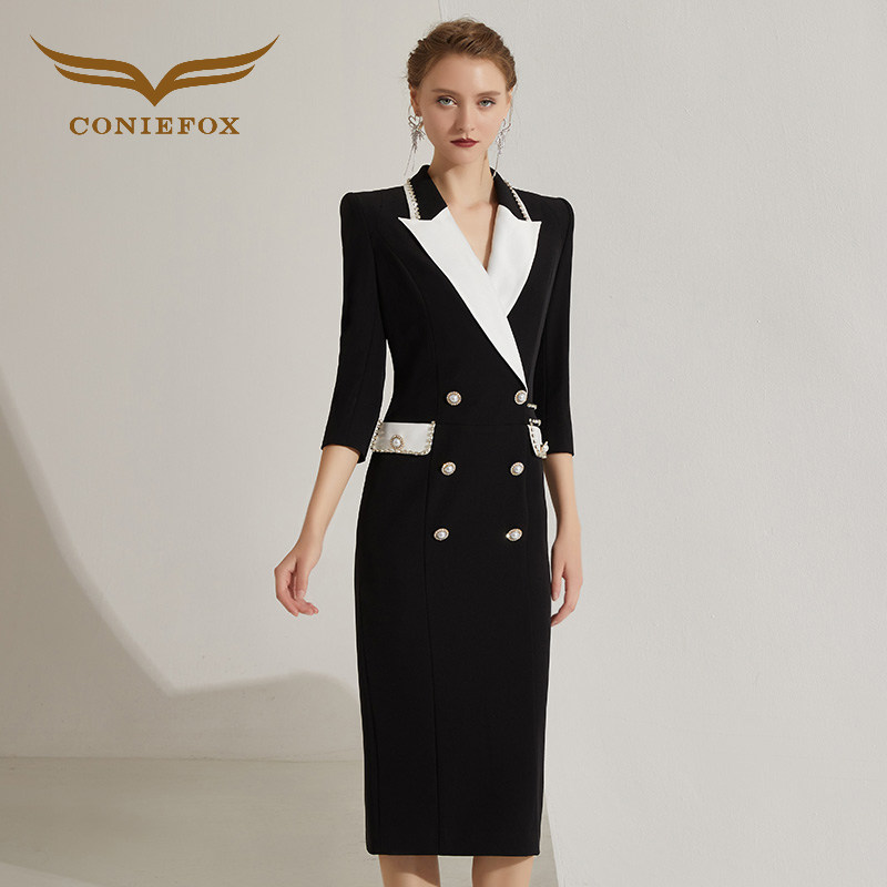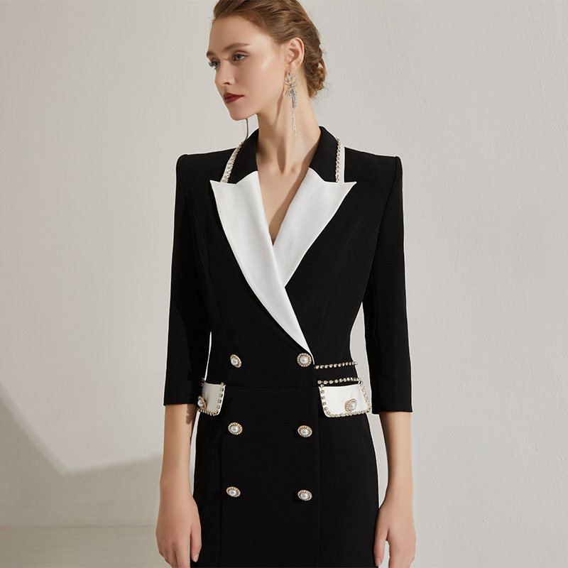 创意狐黑色西装连衣裙女2025新款年会主持人晚宴会名媛气质礼服裙