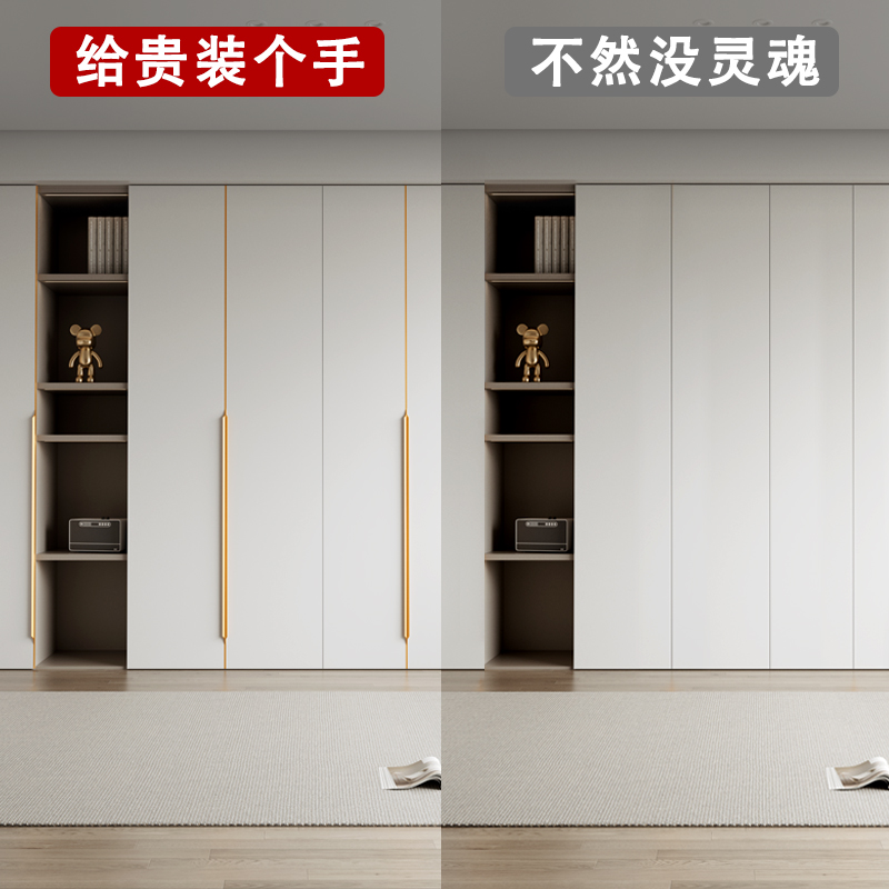 柜门隐形拉手免打孔现代简约通顶拇指免开槽一门到顶衣柜门长把手
