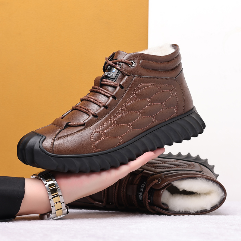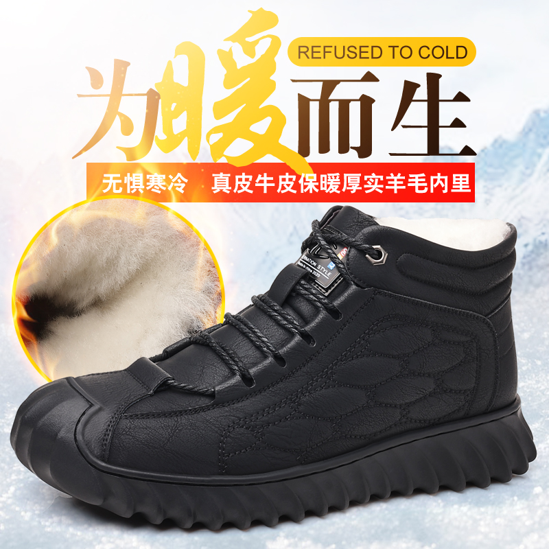 棉鞋男真皮冬季加绒保暖高帮中老年防滑雪地靴男士休闲爸爸棉皮鞋