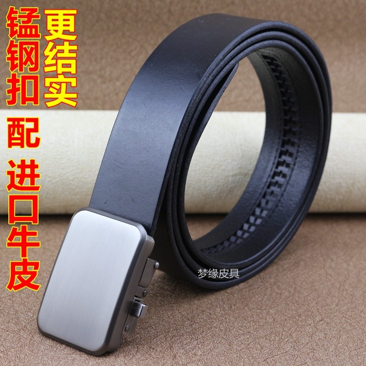 进口植鞣头层牛皮男士真皮锰钢自动扣皮带腰带简约商务中青年裤带