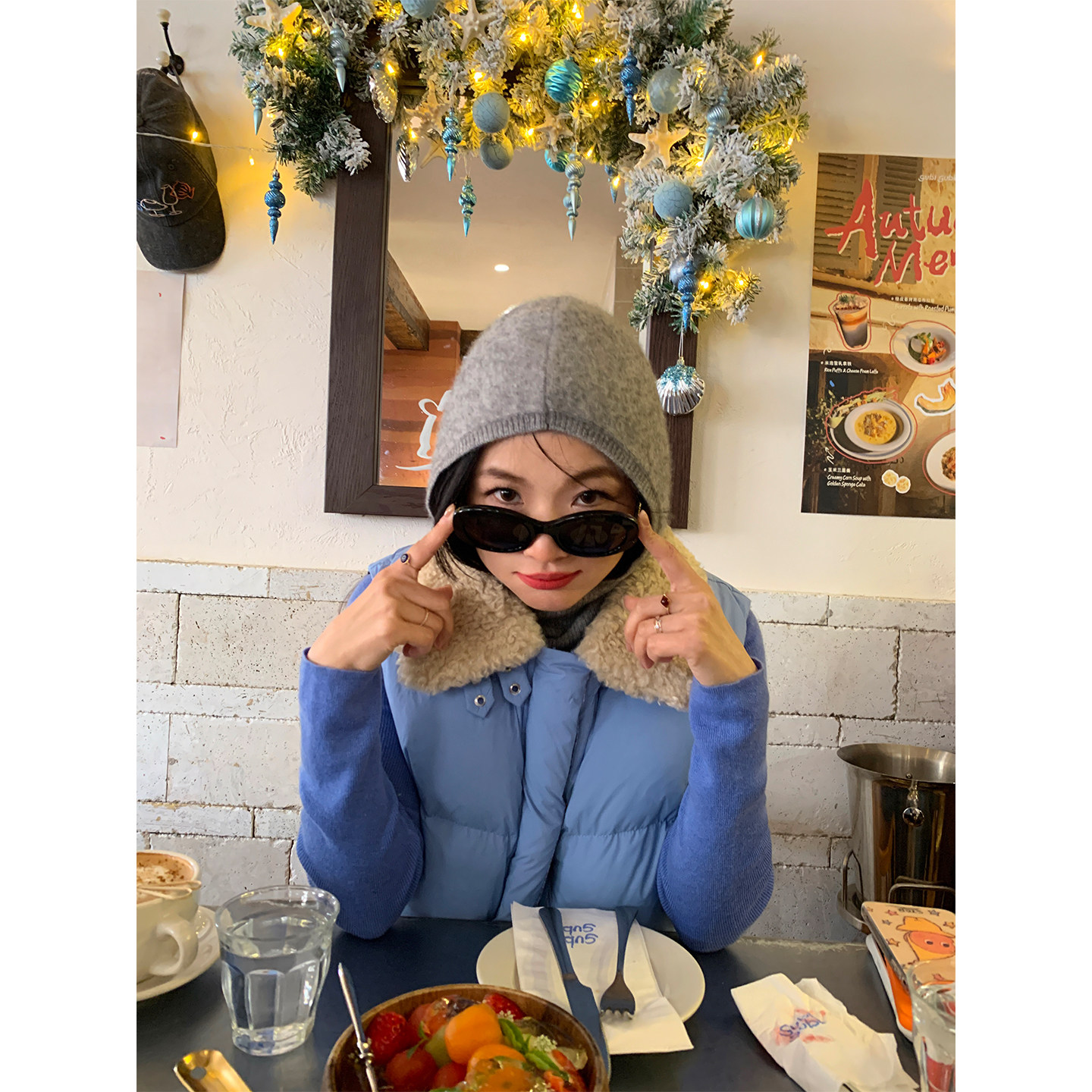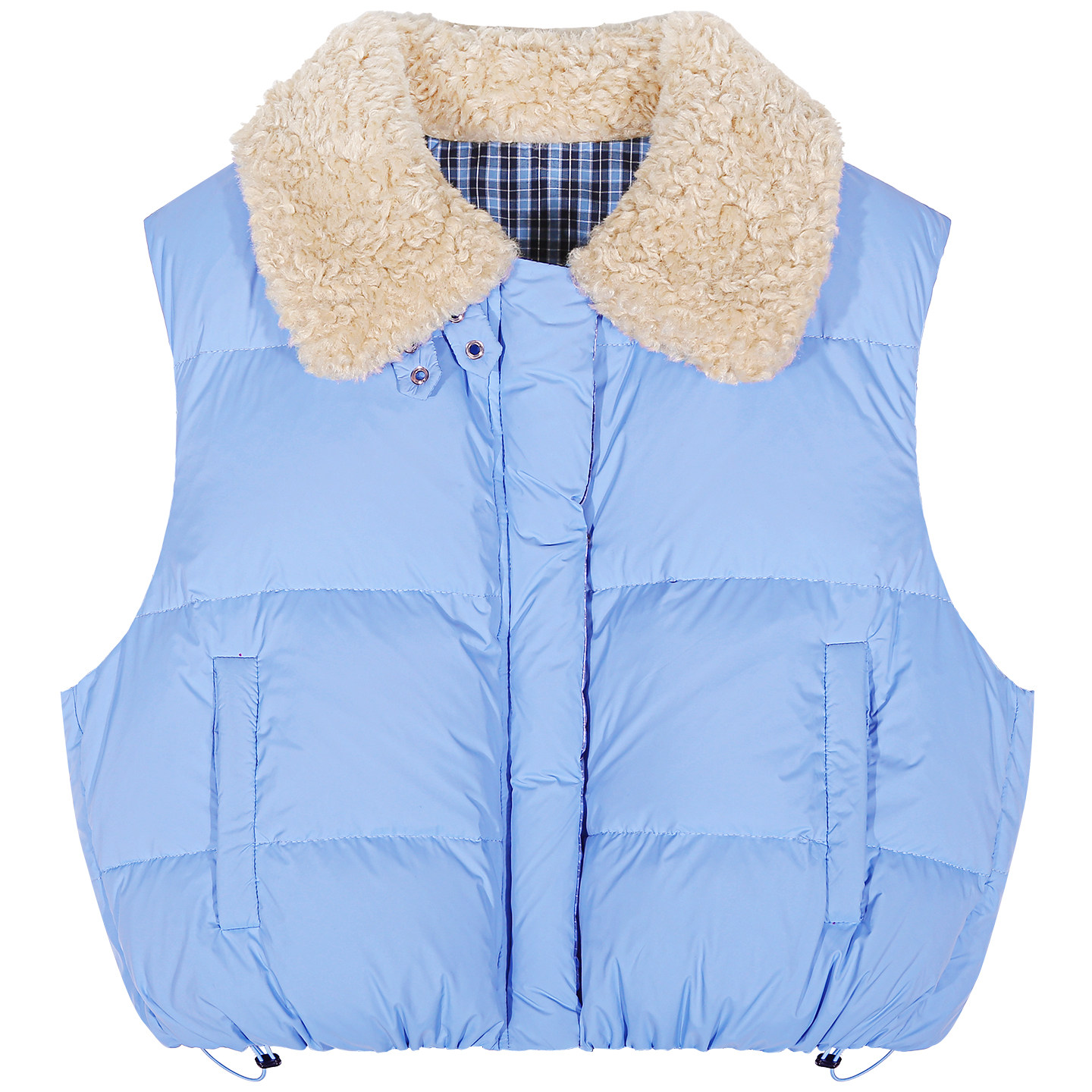 落落狷介 2026巨好看的羽绒服女蓝色拼接无袖马夹小个子百搭外套
