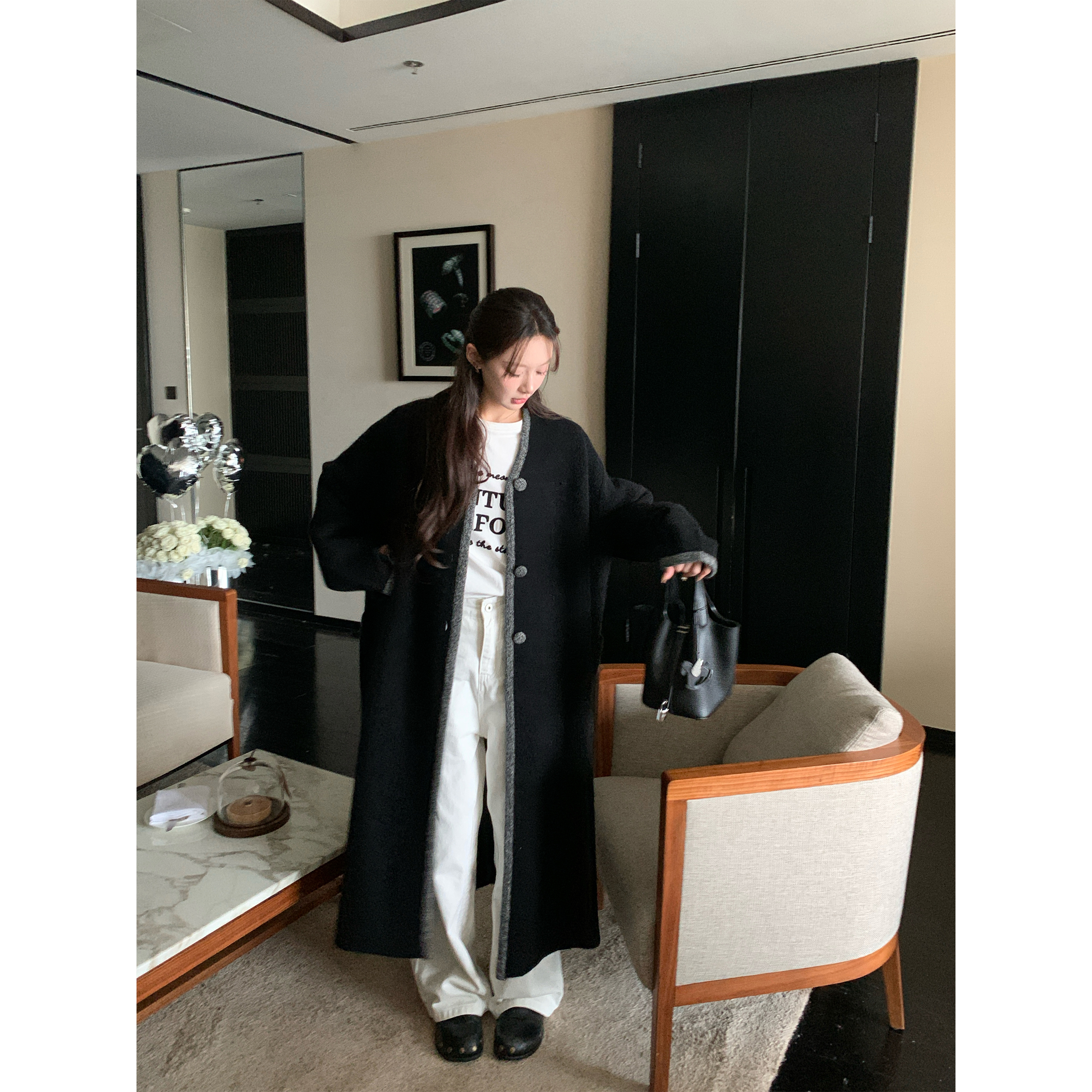 【10.20日新品】【兔毛+绵羊毛】慵懒风宽松撞色毛衣外套女中长款
