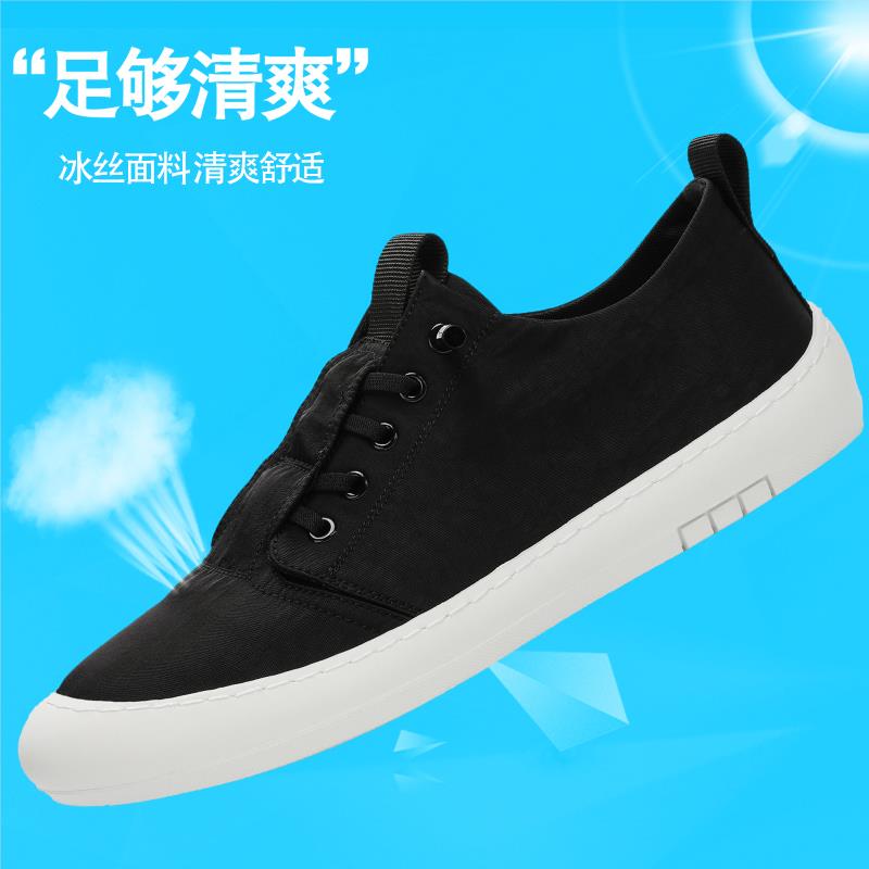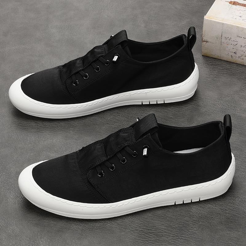 男鞋2025新款夏季透气冰丝布鞋男士春秋一脚蹬休闲 小白帆布板鞋