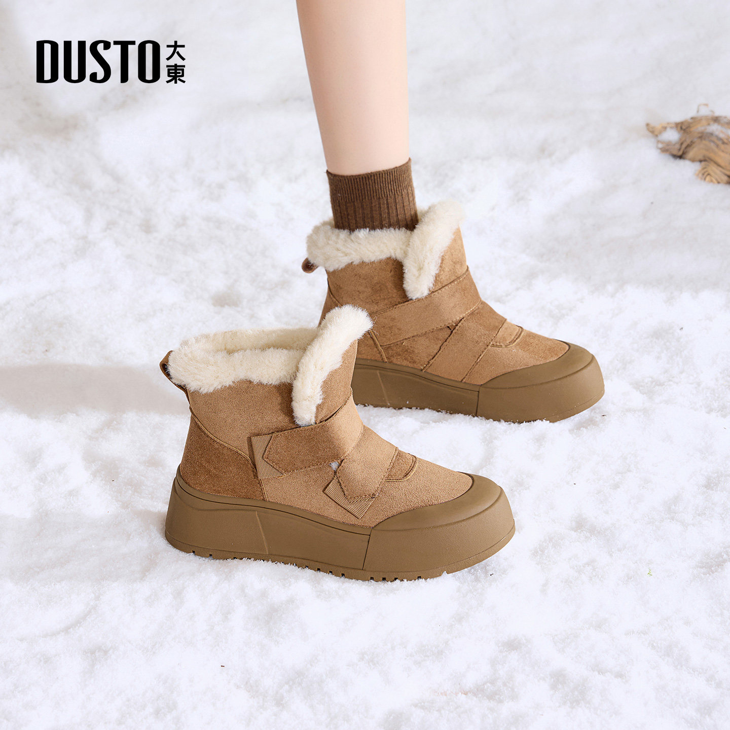 大东dd加绒雪地靴厚底2025新款冬季女靴子保暖棉鞋东北加厚毛毛鞋