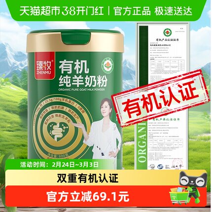 臻牧有机纯羊奶粉800g中老年高钙双重有机认证亲和好吸收更好营养