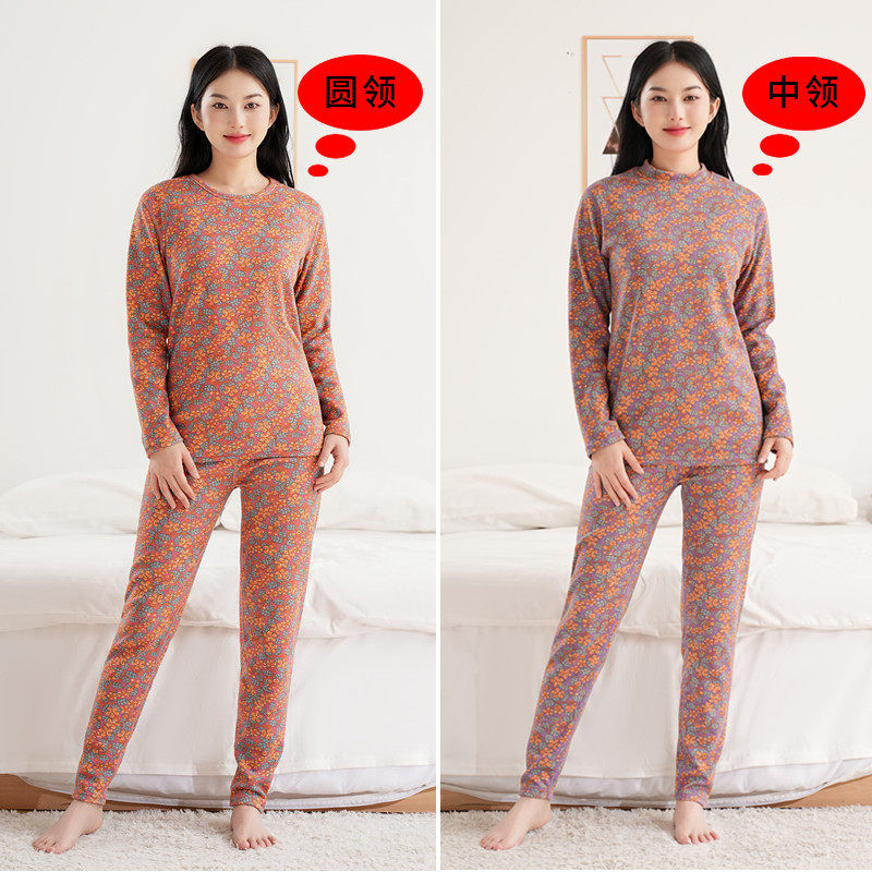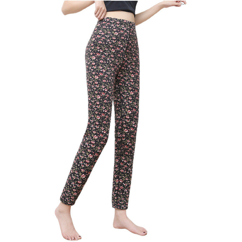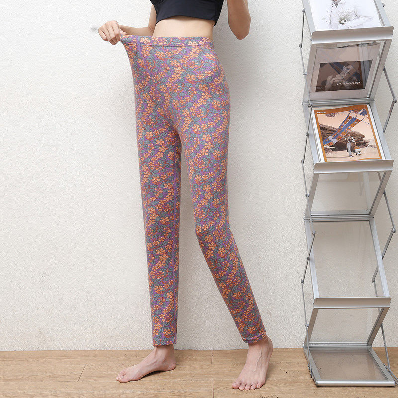 女士秋冬德绒双面磨毛速暖绒保暖打底裤宽松小花内搭