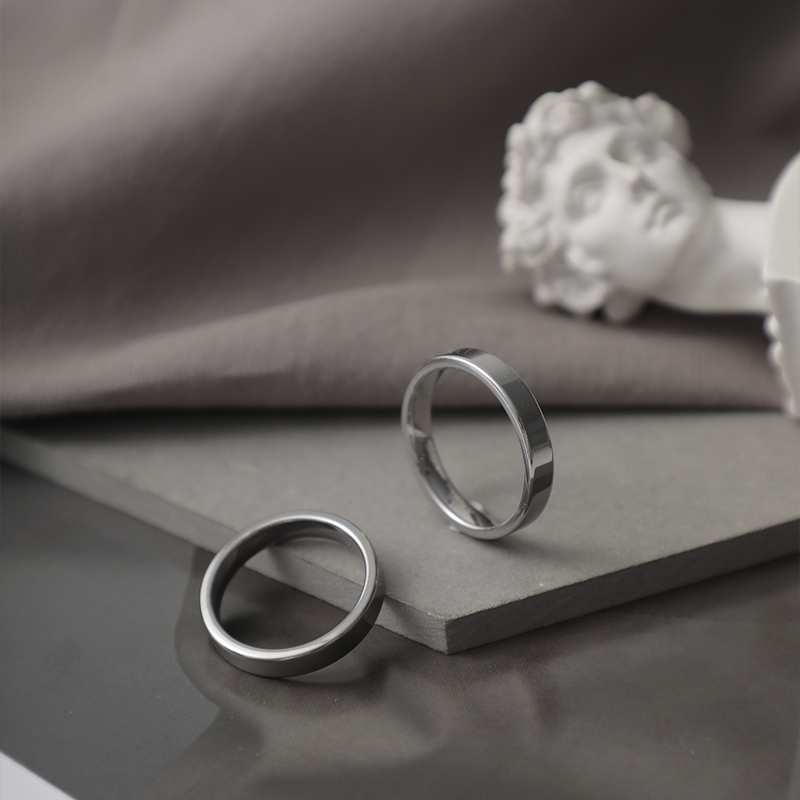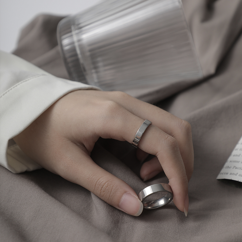 戒指男女潮ins冷淡风简约银色情侣戒指宽窄对戒钛钢不掉色可刻字