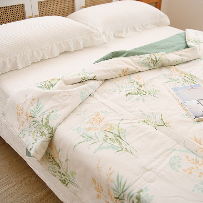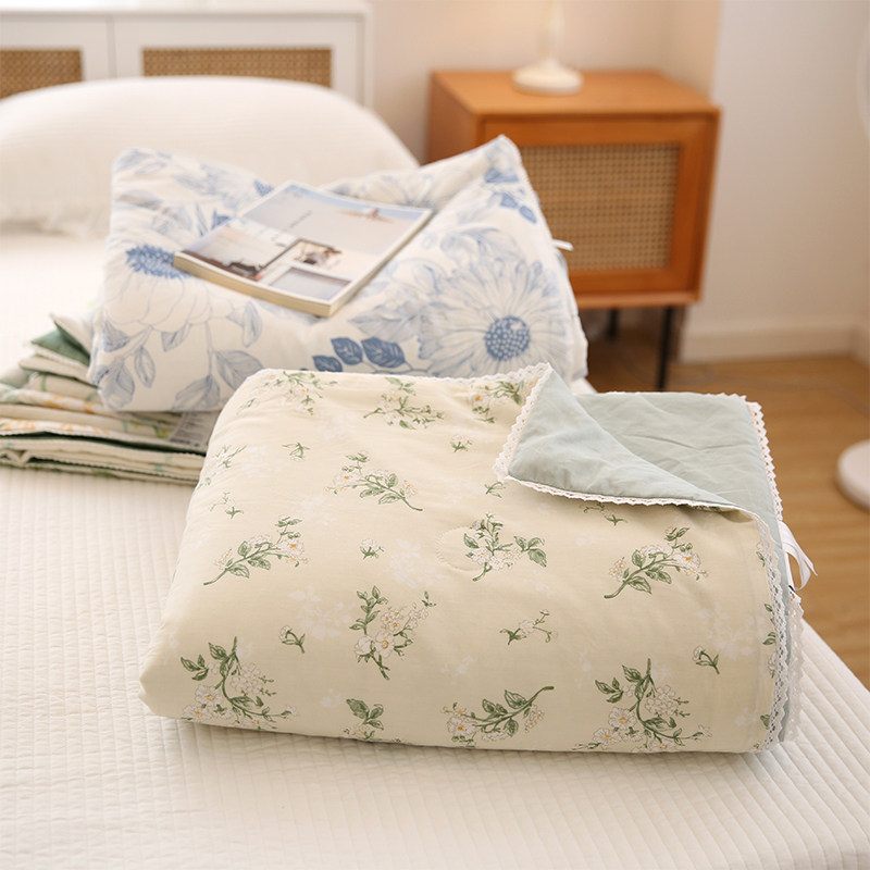 在耳边简约小清新花卉全棉夏凉被夏季薄被子花边纯棉空调被双人被