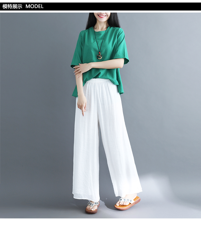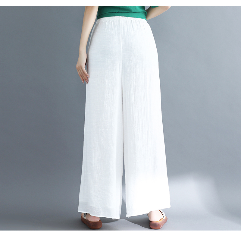 白色阔腿裤夏女薄款高腰棉麻垂感民族风唐装裤子宽松复古亚麻长裤