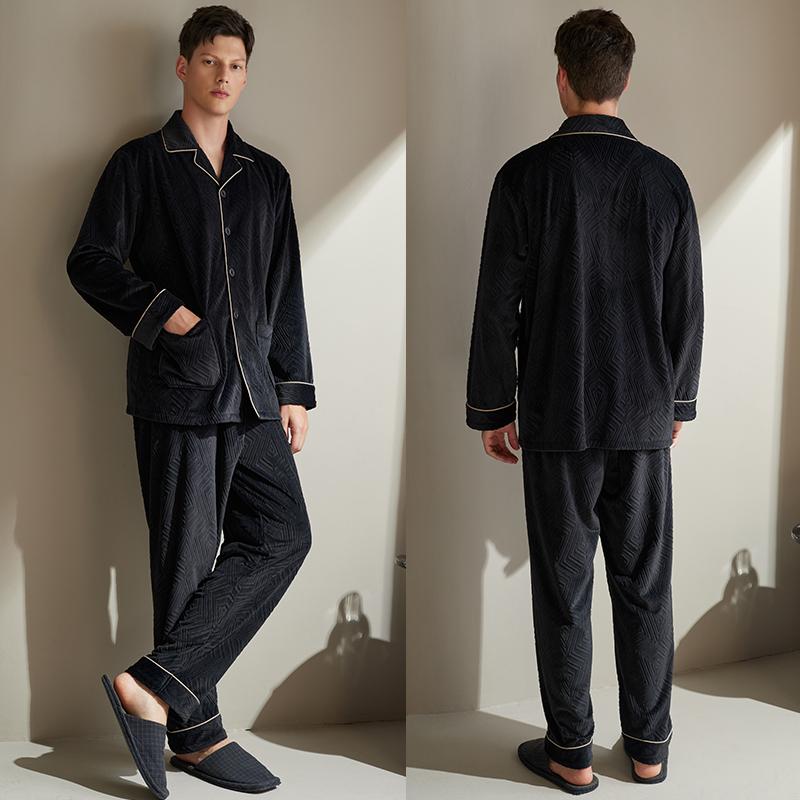 轩靓睡衣男士冬季加绒加厚保暖海岛绒高级感大码珊瑚绒家居服套装