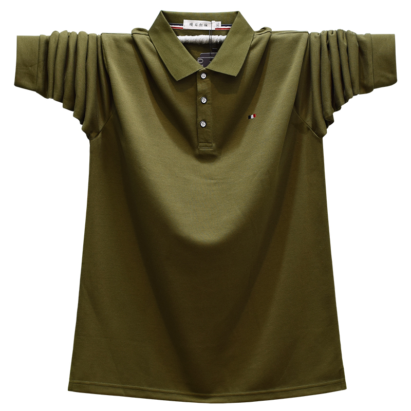 秋冬男士纯棉翻领长袖T恤男宽松Polo衫加肥加大上衣有领T恤爸爸装
