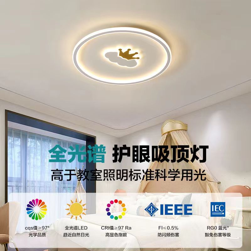 卧室灯LED吸顶灯简约现代卡通儿童房间云朵皇冠2024新款护眼灯具