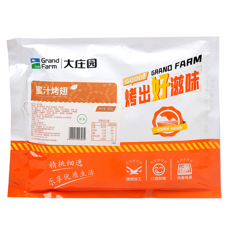 清真 大庄园蜜汁鸡翅300g 腌制鲜冻鸡中翅烧烤家用BBQ烤翅半成品