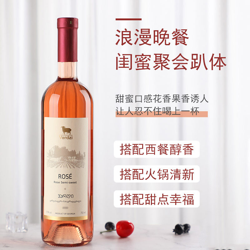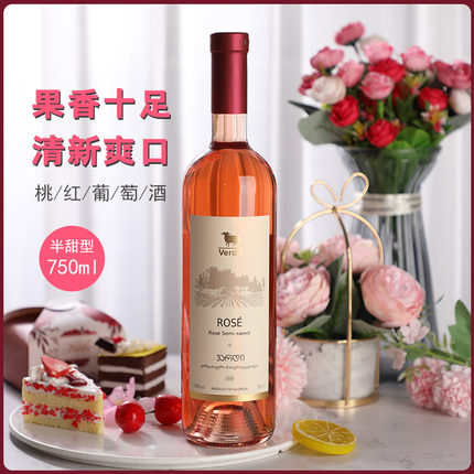 格鲁吉亚红酒维尔兹玫瑰半甜桃红葡萄酒原瓶原装进口男女士微醺酒