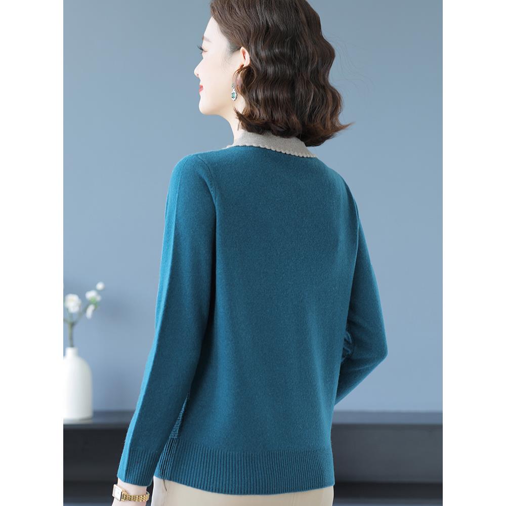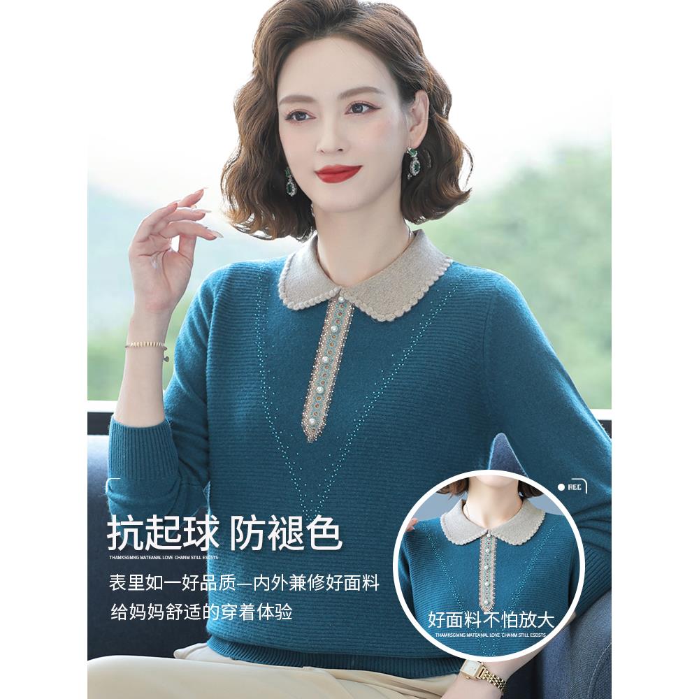 中年妈妈2025春秋新款有领羊毛衫中老年女装春装打底衫毛衣酒红色