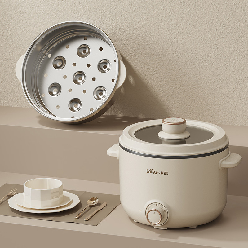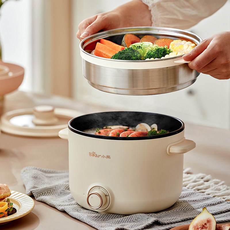 小熊2.5L电煮锅带不锈钢蒸笼炒锅