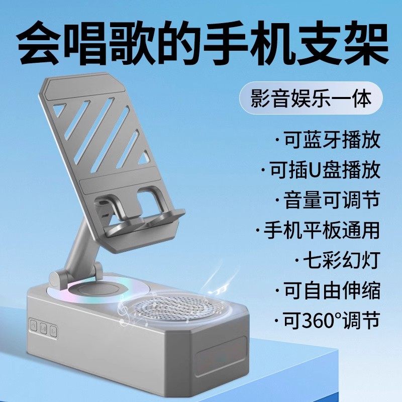 德国进口蓝牙音响充电宝三合一手机支架2025新款可插U盘多功能可旋转影音娱乐一体音箱手机折叠支架轻松追剧